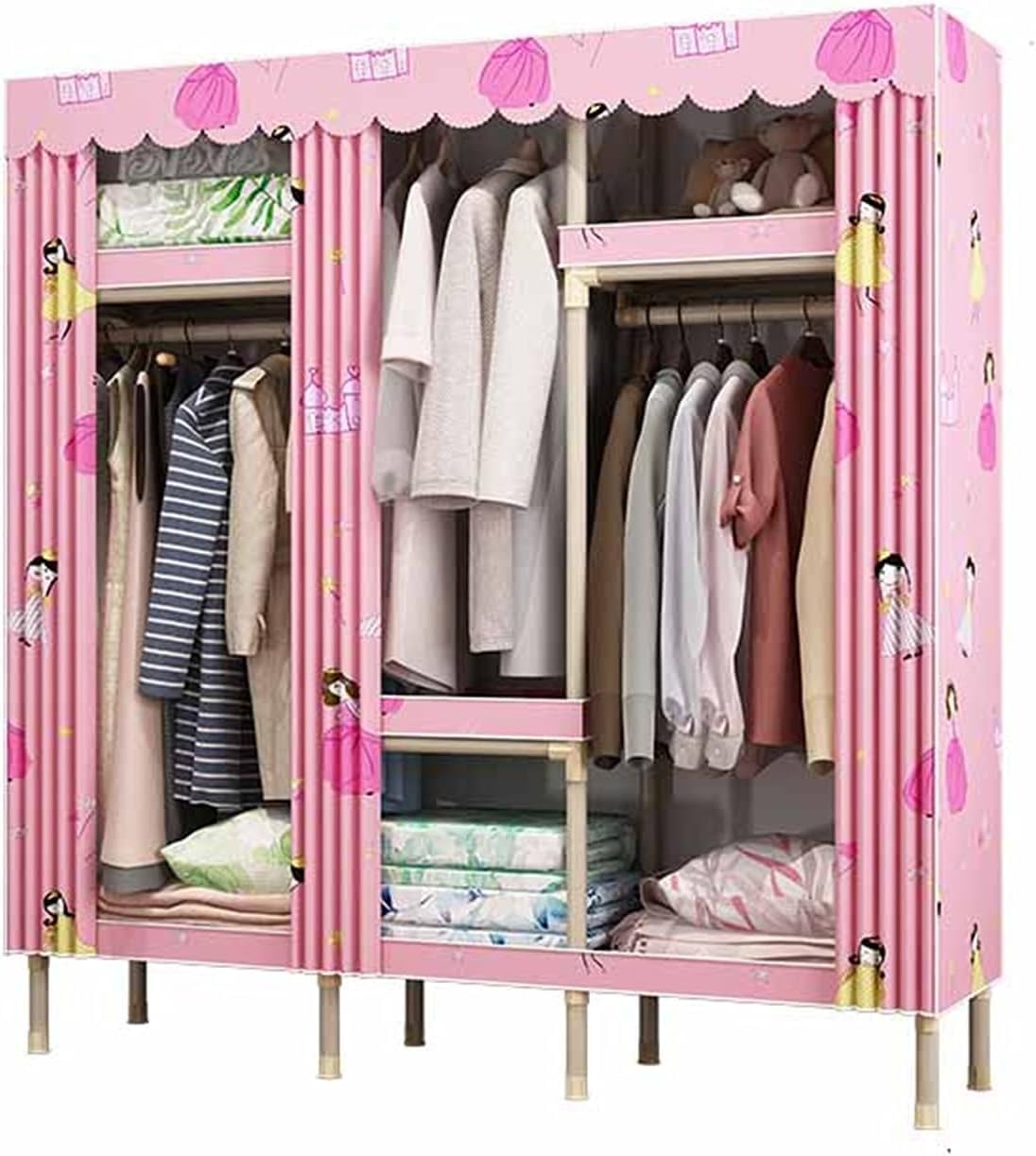 Name: Solid wood cloth wardrobeWooden stick material: metalFabric: High-quality non-woven fabricColor: As shownSize: 175*83CM,175*130CM,175*168CM,175*200CMWhether to assemble: Need to assemble by yourselfReasonable layout of large space, reasonable spatial layout of multi-layer structure to enhance storage space360° design, dustproof and beautiful, better protect your privacyThe upgraded thickened fabric is smooth and delicate, beautiful and generous, strong and durableUpgraded and thickened steel mesh barrier is corrosion-resistant, tough and easy to storePrecautions:Since we use international logistics, it usually takes 15-25 days (more than 30 days) for successful delivery, please contact us in time.If you have any questions, you can contact us through Amazon, and we will help you solve the problem online 24 hours.Tip: Due to different measurement tools, 1-2CM errors may occur. There may be slight chromatic aberration due to the angle of shooting and light. This is normal, please understand