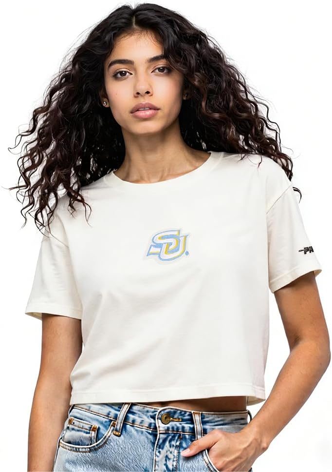 The College Classic Icon Cropped Tee brings a modern twist to campus style. This officially licensed shirt features a clean graphic and cropped length, made from soft cotton for everyday comfort. A fresh fit for students and fans who want to keep it casual but spirited.
