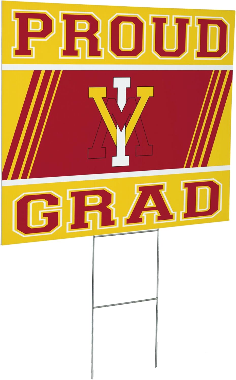 Celebrate your proud graduate with our vibrant yard signs! Printed in the USA, these outdoor-safe signs feature bright, official team logos and colors. Just push the included stake into the ground, planter, garden, or any favorite spot to proudly show off your school spirit and support your graduate!