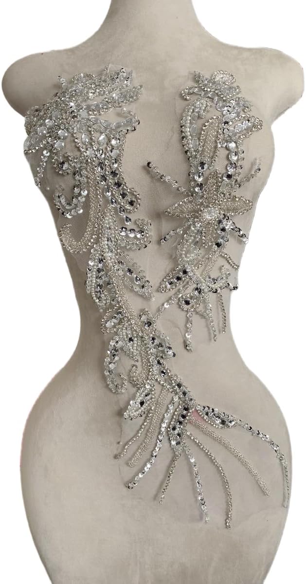 Introducing the MOPISVN Pure Handmade Beaded Crystal Patches Bodice Lace DIY Applique Patches Accessory for Dress Clothes 2PCS/Set 24.4X5.9inches. Our beaded appliqué is a must-have for any DIY enthusiast looking to add a touch of elegance to their dress or clothing piece. The patches are 100% handmade, ensuring top-notch quality and durability. The intricate beading and crystal details are sure to catch the eye and add the perfect amount of sparkle to your design. The patches are versatile and can be easily attached to clothing, bags, shoes, and even home decor items.