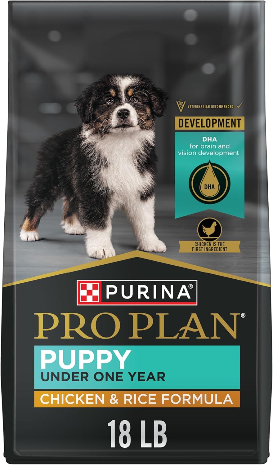 Get your puppy off to a great start by feeding him Purina Pro Plan Brand Dog Food Puppy Shredded Blend Chicken and Rice Formula dry puppy food in his first year. This puppy kibble has real chicken as the number 1 ingredient as well as rice, a good source of carbohydrates for energy, to provide your little guy with the outstanding nutrition he needs. The highly digestible puppy food promotes optimal nutrition delivery and has no artificial colors or flavors. The tempting pieces of hard kibble and tender shreds in this chicken and rice puppy food are sized appropriately for his mouth and teeth. DHA from omega-rich fish oil nourishes brain and vision development, and the antioxidant-rich formula supports his developing immune system. We fortify this Pro Plan dry dog food specially made for puppies with guaranteed live probiotics for dogs to support digestive and immune health. Phosphorus, calcium and other minerals build strong teeth and bones to help your pup grow up big and strong.