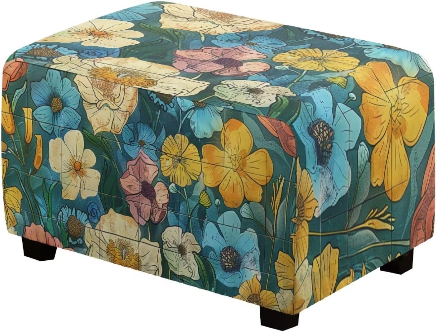 Fabric: Polyester & Spandex Full Protection and Decoration: Our ottoman covers slipcover square stretch not only protects your ottoman in all aspects from daily wear and tear, scratches from kids, pets and dogs or accidental spills, but also protects your old furniture and also adds elegance to your home décor. Holds securely in place Versatile: Our storage ottoman covers slipcover rectangle not only protect your saddle stools from stains, but also update the furniture in your home for a custom upholstered look. Perfect for patios, gardens, pubs, bars, clubs, homes, bookstores, restaurants, kitchens, eateries and more. Multiple Styles, Personalized Choice: This foot rest covers for stools of ours offers a variety of colors and patterns to choose from, such as flowers, animals, geometric patterns, etc., to meet different home styles and personalized needs. Easy Care: Machine washable for easy care and maintenance, separately in cold water on the gentle cycle, do not use bleach