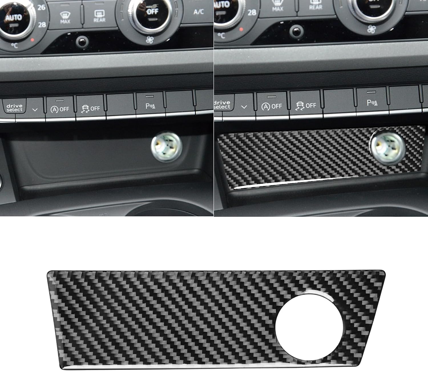 Real Quality Soft Carbon Fiber Car Center Console Gear Shift Panel Interior Trim Premium Sticker Cover Compatible with Audi B9 A4 S4 2017-2024 / A5 S5 RS5 2018-2024 Accessories Black - A