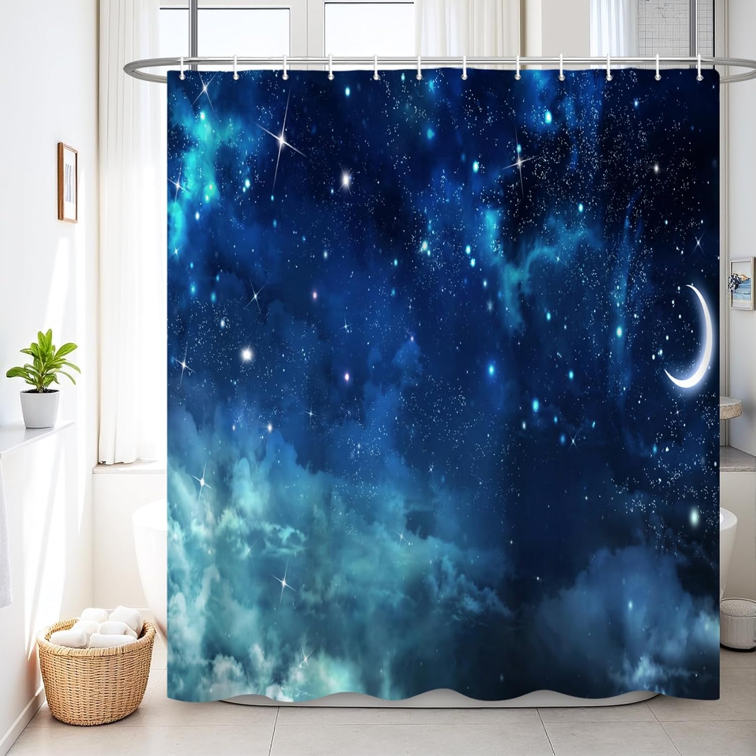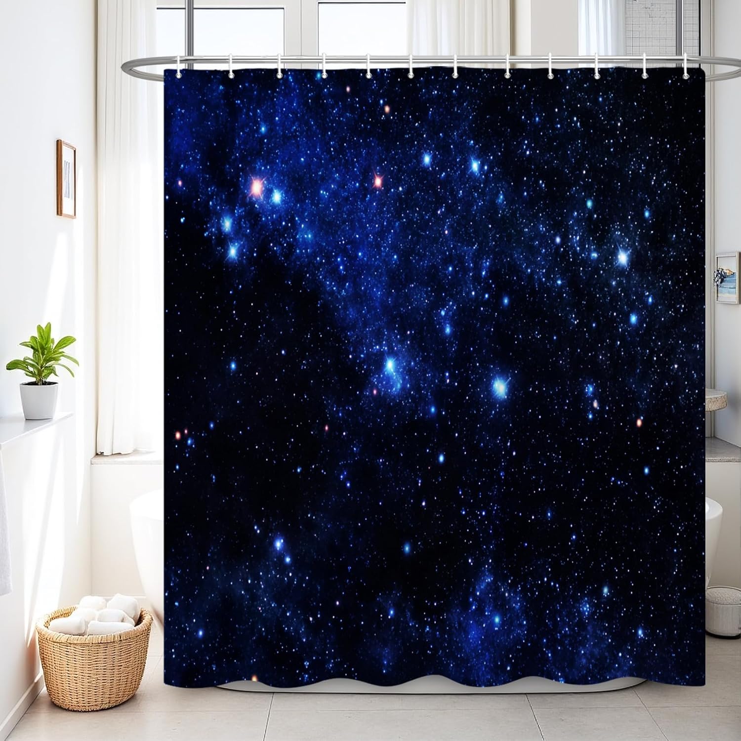 Renaiss| Where Bathrooms BloomBorn from a mom’s quest to transform mundane routines into joyful moments, our shower curtains fuse water-resistant art with eco-smart fabric. Each design sparks imagination—turn your shower into a tropical oasis, galaxy escape, or minimalist haven.Transform Your Bathroom Experience with Premium Print Pattern Shower Curtain Upgrade your daily routine with our 100% Premium Polyester Shower Curtain – where functional durability meets elegance. Designed for busy hands-free households, this curtain is your ultimate solution for a leak-free, stylish, and low-maintenance bathroom sanctuary.Why This Shower Curtain Stands OutLuxury-Feel Fabric: Ultra-smooth 95g polyester fabric resists tearing and yellowing, maintaining like-new appearance through years of steamy showers. Reinforced stitching prevents sagging.6-18 Rust-Proof Grommets: Heavy-duty nickel-plated rings glide effortlessly on any rod (tension/ceiling-mounted rods included), eliminating frustrating snags during installation.Spa-Worthy Waterproof Shield: DWR coating creates water barrier,perfect for kids' bubble baths or power showers.3-Hour Quick Dry Technology: Patented airflow weave reduces drying time by 65% vs standard curtains, preventing 99% mildew growth.Designer-Approved Florals: Vibrant UV-resistant prints coordinate with farmhouse subway tiles, boho rattan accents, or modern chrome fixtures. Seasonal pattern updates keep your decor fresh.Smart Features for Real LifeRenter-Friendly - Fits most standard tubs without hemming2-in-1 Versatility - Use alone for airy lightness or pair with clear linerWrinkle-Resistant - Straight-from-package readiness, no ironing neededPet & Kid Safe - Non-toxic OEKO-TEX certified materialsEco-Conscious Care - Cold wash compatible, saves energy vs vinyl alternativesComplete Kit Includes:1 x Shower Curtain6-18 Plastic Hooks(Depends on curtain size)