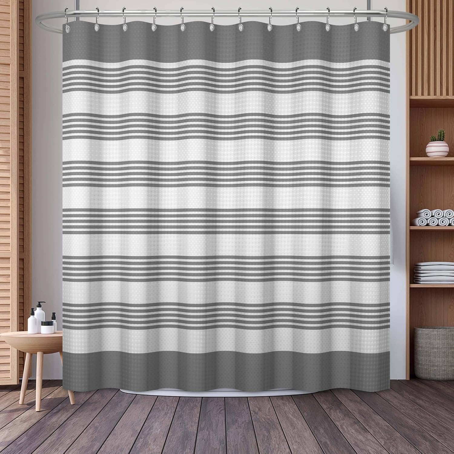 Welcome to Renaiss Home Decor Clean and hygienic shower environment, soft and smooth shower curtain and simple and generous bathroom style will give you the most comfortable shower experience and let you enjoy a beautiful home life. DIMENSIONS: 72(W) x 74(L) inches -6(W) x 6.2(L) feet-183(W) x 188(L) cm MATERIAL: Polyester FEATURE: Water Repellent PACKAGE: 1 x Shower Curtain, 12 x Silver Metal Hooks ABOUT CUSTOMIZATION: 1. Add or delete pictures or text. 2. Customize other sizes HOW TO REMOVE CREASES: Iron the back with a steam iron at low temperature, preferably with a cloth between the shower curtain and the iron when ironing. NOTE: 1. It's a normal phenomenon that slight white foam and particle sediments may appear. There is talcum powder on the shower curtain to protect the newly printed ink, which can be cleaned directly. 2. You can uncover the shower curtain after a shower to let airiness which can extend the service life of it. 3. The shower curtain can be washed by washing machine (weak wash) when the water temperature is lower than 86℉(30℃). 4. Due to the difference between the display device and the light, it may be little color difference between the picture and the actural product. 5. Please allow 1 inch/3 cm error due to manual measurement.