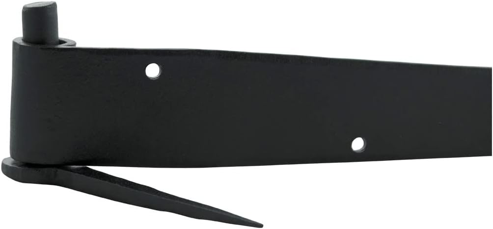 BLACK SPADE STYLE WROUGHT IRON PINTLE HINGE STRAPAffordably upgrade or reclaim your home barn doors or gates, window using this traditional black driven pintle strap hinges. These antique Surface mount pintle hinges are crafted of high quality wrought iron material. Black rust resistant powder coating protects this item for years to come. These were used in the 1700, they were driven into wood although not always accurately. However today they can easily be secured into masonry and wood with much more precision.FEATURES- Wrought iron construction lasts longer than the competition- Exclusive black rust resistant powder coat finish resists stains and rust- Perfect for a wide range of applications like doors, gates or windows- Includes Screws in the package- Easy installation with a smooth open mechanism- Authentic Colonial reproductions Old World charmSPECIFICATIONS- Material- Wrought Iron- Colour- Black- Finish- Rust Resistant Powder Coat- Hinge Length - 16 In-Hinge Width - 2 In- Screw Holes - 4FREE MOUNTING HARDWAREPackage includes 4 free complementing Screws with our black wrought iron Pintle strap hinges.100% SATISFACTION GUARANTEEThese are carefully wrapped to avoid any scratches in the transit process. Renovators Supply Manufacturing offers you great value products for your money and a perfect way to spend wisely. We also provide 30 days guarantee with no fee.