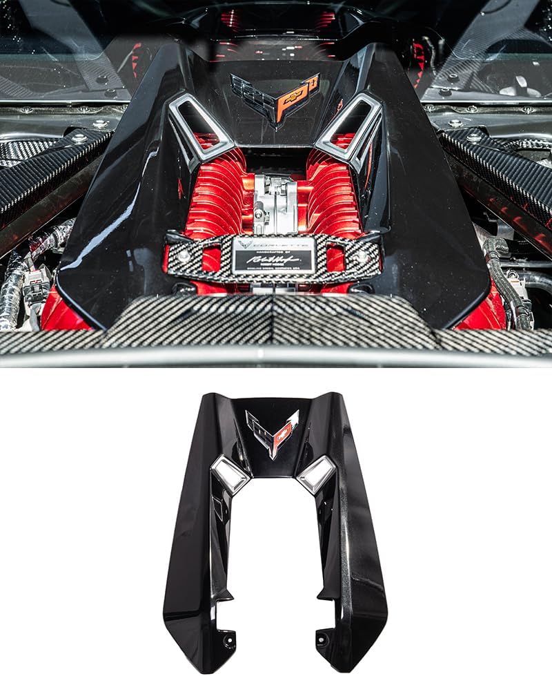 Replacement For 2023-Present Chevrolet Corvette C8 Z06 Coupe Models | GM Factory Style Dry PrePreg Carbon Fiber Rear Engine Trim LT6 Valve Vent Cover (Black Carbon Fiber)