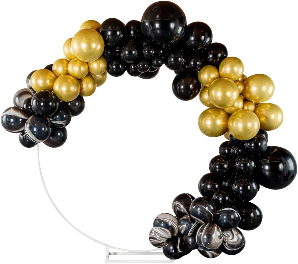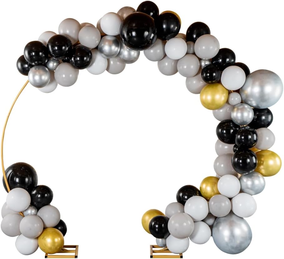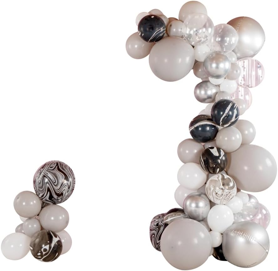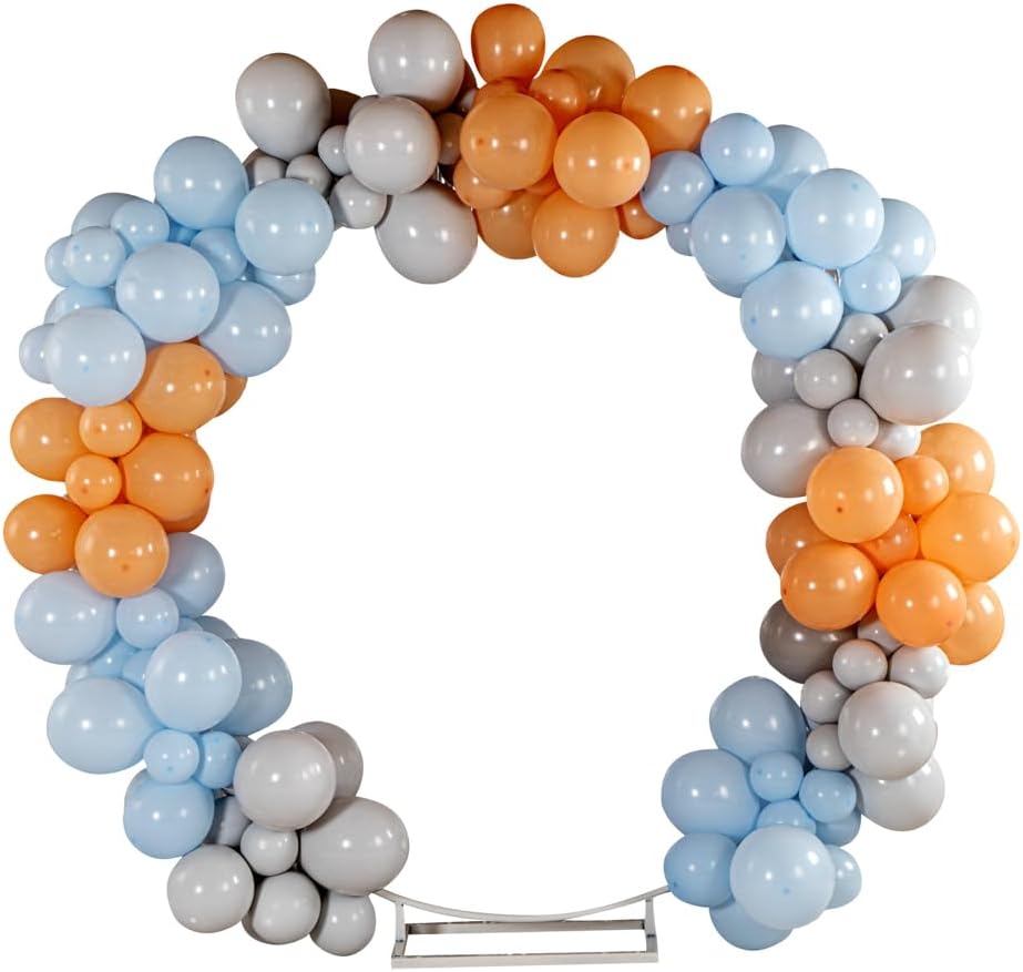 Present a stunning backdrop at your party with our Balloonify Champagne Star Balloon Arch / Garland Kit. Made from premium material, these latex balloons are durable and odorless. With 126 balloons, 1 balloon strip (16.4 feet), 1 ribbon, and 1 glue dot strip (100 dots), this DIY balloon garland kit allows you to deck up your place easily. This balloon arch kit has a two-holed balloon strip that makes it simple to insert air-filled balloons and secure them tightly. The moistureproof glue dots of this balloon garland kit help to attach small balloons to the bigger balloons to give a unique appeal to the place. This balloon arch decoration kit includes 55 macaron orange balloons, 55 matte grey balloons, 11 matte white balloons, 2 foil star silver balloons, and 3 foil star champagne gold balloons. To add a fun element to your decoration, this birthday balloon arch set includes foil star balloons. The shiny ribbon in this balloon garland backdrop kit adds sparkle to the setup. In this DIY balloon garland kit, you'll receive 5-inch balloons (10 pieces), 10-inch balloons (110 pieces), 18-inch balloons (6 pieces), 16.4-foot long balloon strip (1 piece), 32.8-foot long ribbon (1 piece), and 1 glue dot strip with 100 dots. All the balloons are shipped flat and deflated. Sold in a box with 55 macaron orange balloons, 55 matte grey balloons, 11 matte white balloons, 2 foil star silver balloons, 3 foil star champagne gold balloons, 1 balloon strip, 1 glue dot, and 1 ribbon. Arch not included. Electric air balloon pump (ASIN: B0CFVTMWDV) is available and sold separately.