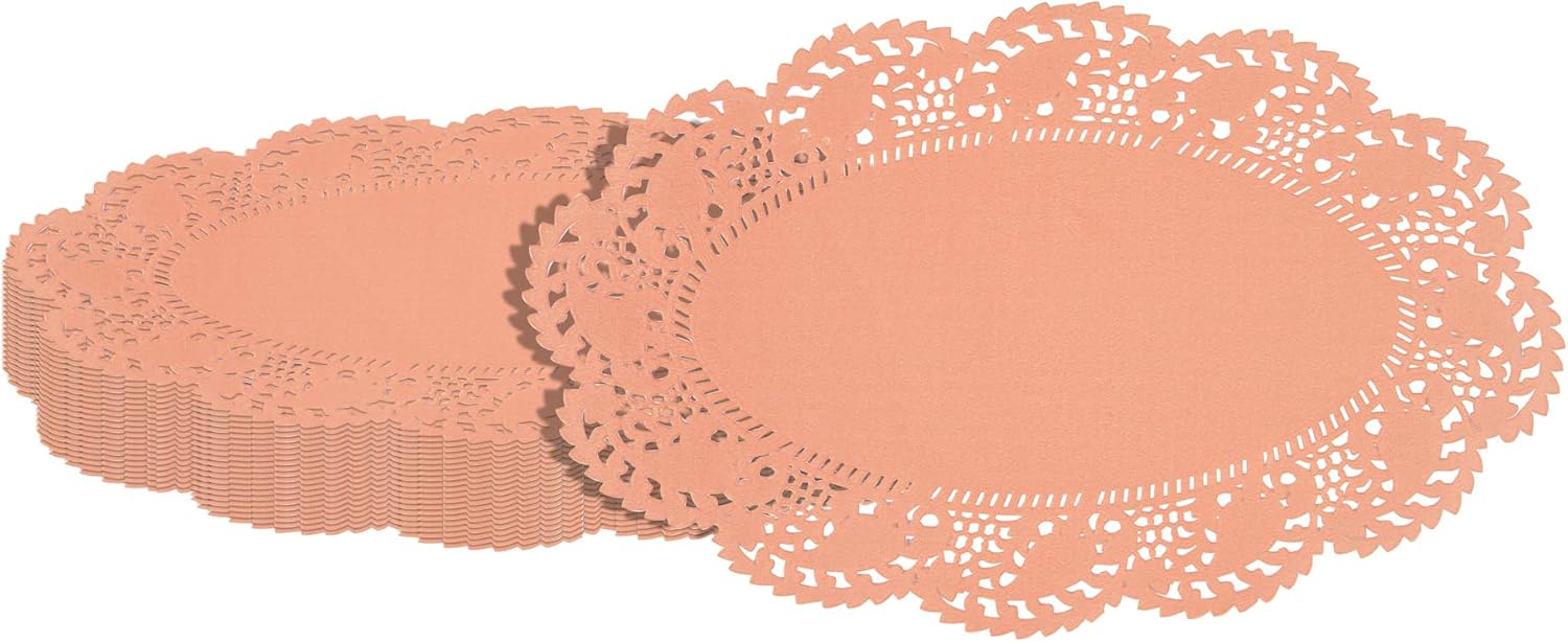 Enhance your dessert displays with our Pastry Tek Oval Coral Paper Doilies, adding an elegant touch to every presentation. Crafted from premium paper, these lace doilies provide the durability needed for showcasing desserts at bakeries or catered luncheons without tearing or losing their structural integrity. Featuring intricate lace-like details, these table doilies not only increase the visual appeal of food presentations but also serve as functional barriers, protecting surfaces and absorbing moisture. The coral colored finish of these small doilies allows them to complement a wide range of table settings and themes, making them the perfect choice for various events and occasions. Designed for convenience, these disposable paper doilies eradicate the hassle of post-event cleanup, offering a time-saving solution for busy hosts and food establishments. Ideal for use under cupcakes, petit fours, macarons, and other small treats, these lace doilies measure 9 inches in length by 6.5 inches in width. Sold in a 4,000 count box.