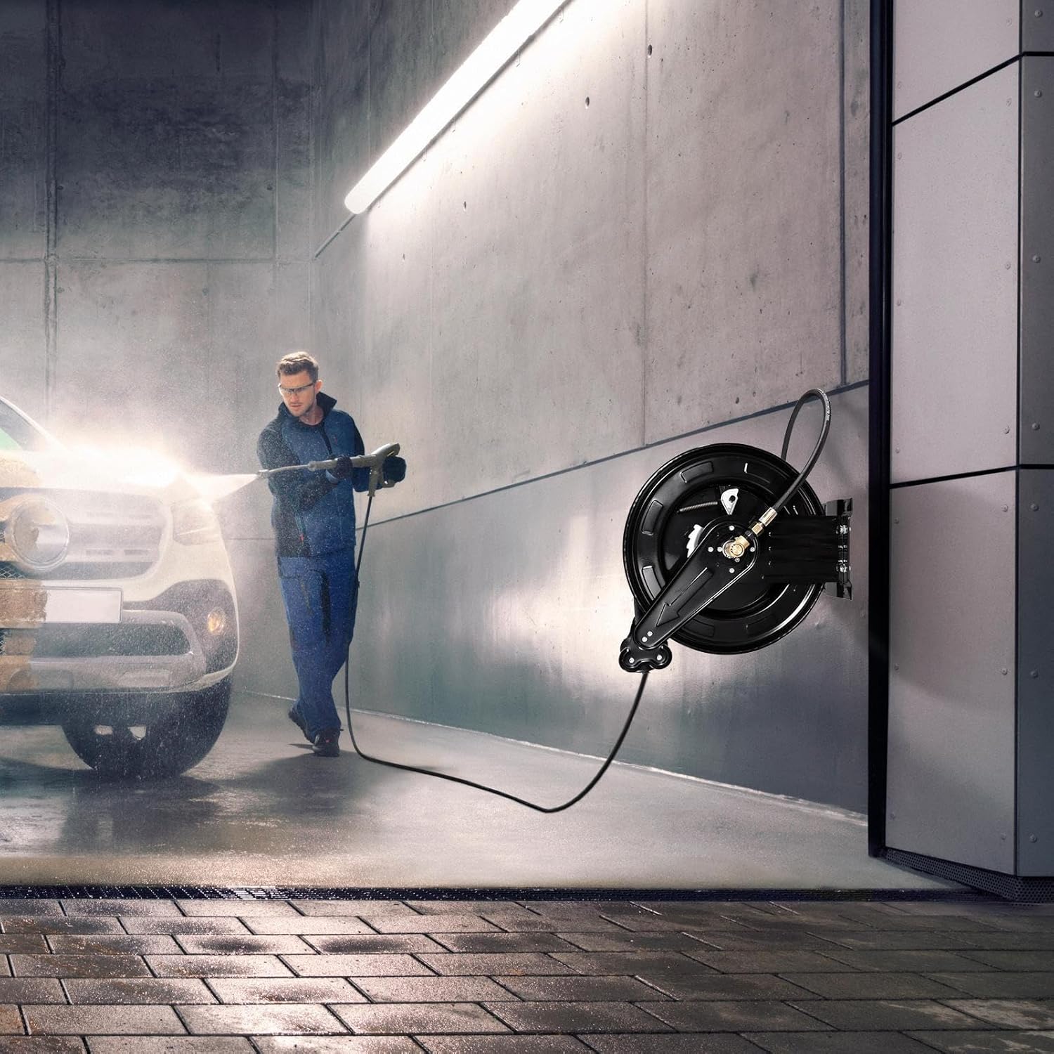 This water washer hose reel eliminates the need for manual winding, saving you time and effort. Made of heat-treated, high-alloy steel, it's dependable and widely used by professionals and homeowners alike.Specification:Product name: High Pressure Washer Hose ReelColor: BlackMaterial: Alloy steelInstallation type: wall-mounted, ceiling-mountedOutlet hose size: 50ft/15.2mInlet hose size: 0.59in/14.9mmOperating Pressure: 4000 PSIMaximum Temperature: 212°F / 100°CPacking List:Washer hose reel *115m water belt *1Positioning ball *1Cardan joint *1Fixing screws *4Conversion connector *1 (model: 18*1.5H, color varies with supplier's bulk shipment)Instruction manual *1Notes:1. Due to different lighting and screen settings, the item color may be slightly different from the picture.2. Due to different manual measurements, please allow a 1-2cm difference in size.3. Please make sure to read the instructions before use to understand all installation and operations steps.4. Check the hose and connector regularly to ensure no leaks and extend service life.