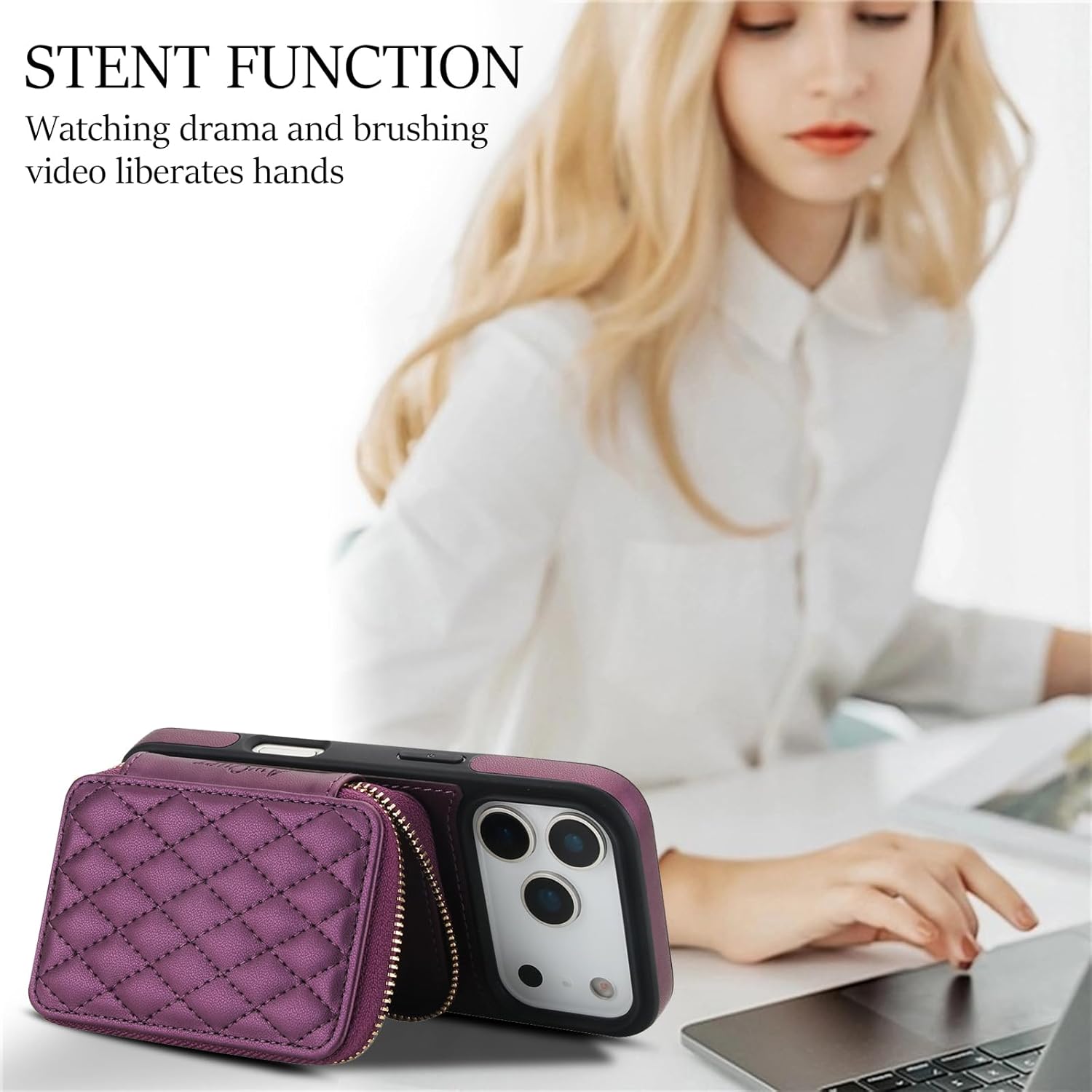 Introducing the Xdfeng wallet phone case that revolutionizes how you carry your essentials. This sophisticated case features 6 practical card slots perfect for your ID, credit cards, and cash, eliminating the need for a separate wallet. The quilted leather design adds a touch of luxury while providing durability. With built-in RFID blocking technology, your cards stay protected from unauthorized scanning. The case includes a convenient zipper closure to keep your valuables secure, and the precise camera cutouts ensure uncompromised photo quality. The stand function allows hands-free viewing of videos and content. This multifunctional case maintains a slim profile despite its storage capacity, making it ideal for daily use. The premium construction includes gold-tone hardware accents and raised edges to protect your phone's screen and camera. Perfect for those who want to streamline their everyday carry while maintaining style and security.