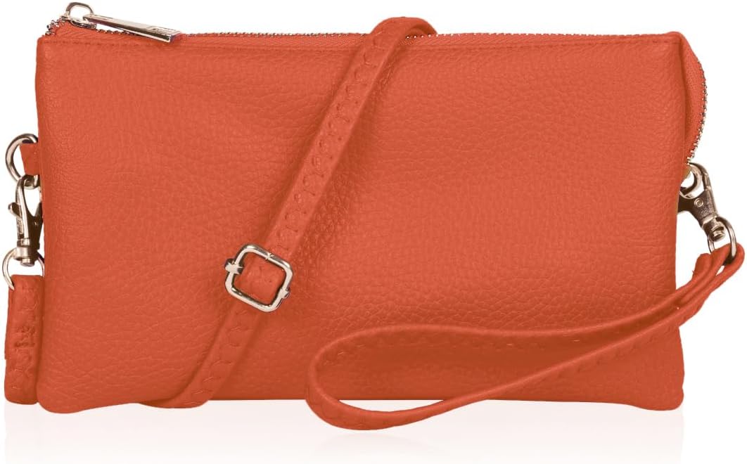 PRODUCT DETAILS - Skip the bulky bag, but still have everything you need when you carry your phone, keys, wallet, and more in this flat vegan leather crossbody. This faux-leather crossbody bag features a sleek or ostrich embossed fabric and shiny gold hardware for a clean, sophisticated look that goes with everything from a basic tee and jeans to a shift dress and heels. MATERIAL: Faux Leather. MEASUREMENTS: 8.25"W x 5"H x 1"D