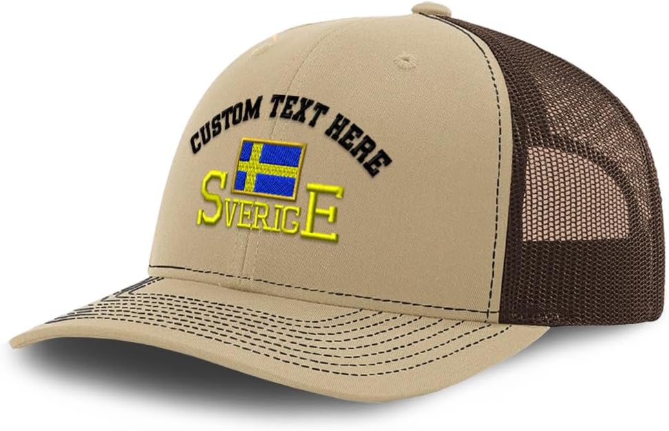 Elevate your style with our premium Richardson caps 6-panel trucker cap, designed for comfort, durability, and versatility. Made from high-quality 100% acrylic, these hats provide excellent breathability and long-lasting wear, making them a perfect choice for both men and women.Featuring crisp, vibrant, and detailed embroidery, our black trucker cap is designed to make your design stand out. The embroidery ensures the design lasts and looks sharp.The fully adjustable design includes a pre-curved bill, anti-sweat band, and a reliable snapback closure, providing a secure and customizable fit that keeps you comfortable throughout the day. Whether you're heading to a sports game, casual outing, or event, these embroidered baseball hats are the perfect accessory to complete your look.Our vintage trucker hats are more than just stylish – they’re a great gift idea! Perfect for birthdays, Christmas, Father’s Day, Mother’s Day, Sweden , Swedish , , Swedish gifts , Sverige gifts , Scandinavian gifts , Stockholm gifts , ,or any special occasion, this cap is a thoughtful and practical gift for loved ones.Choose a hat that reflects your personality, enhances your wardrobe, and suits any occasion with our versatile, high-quality baseball cap.