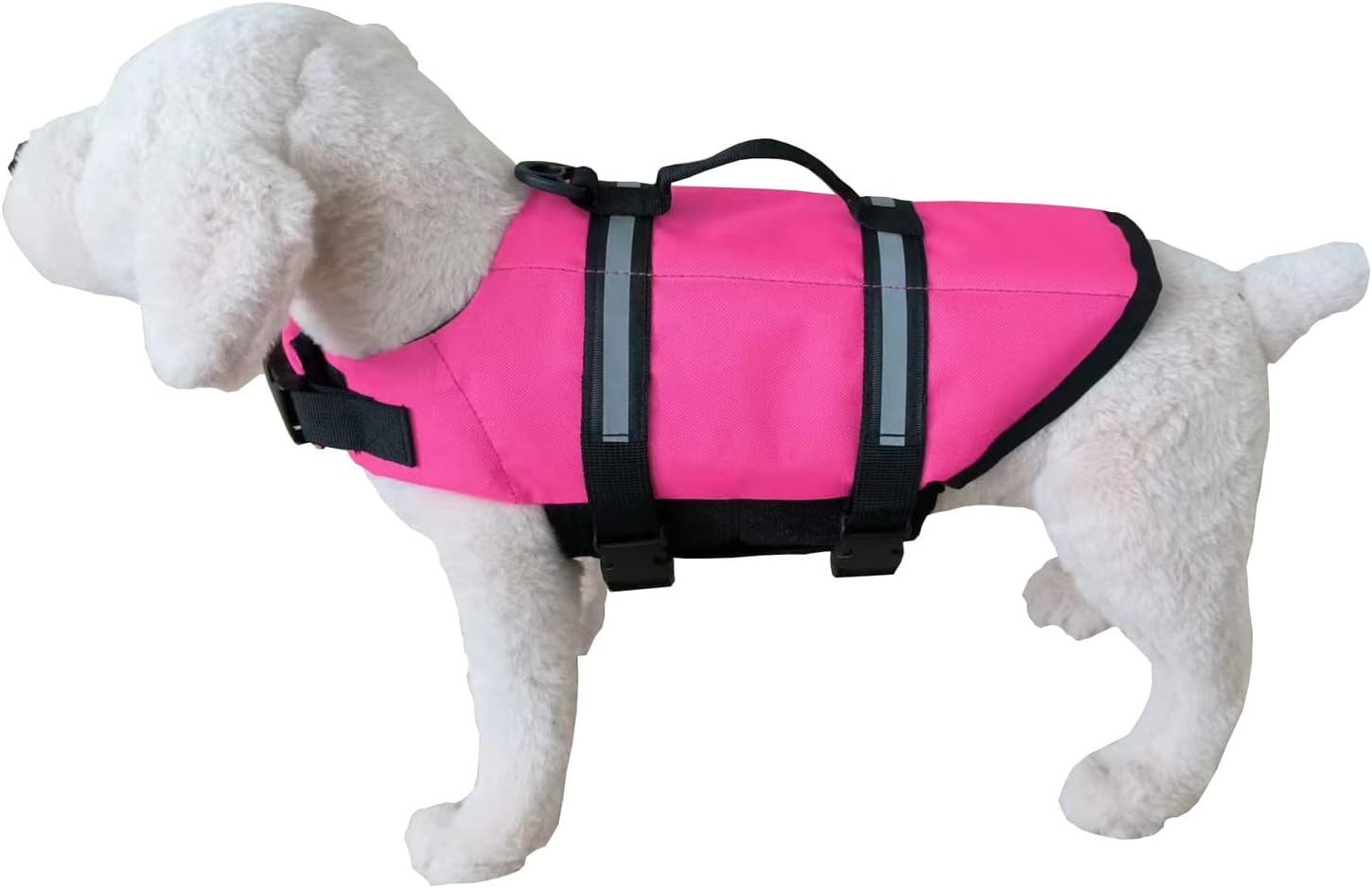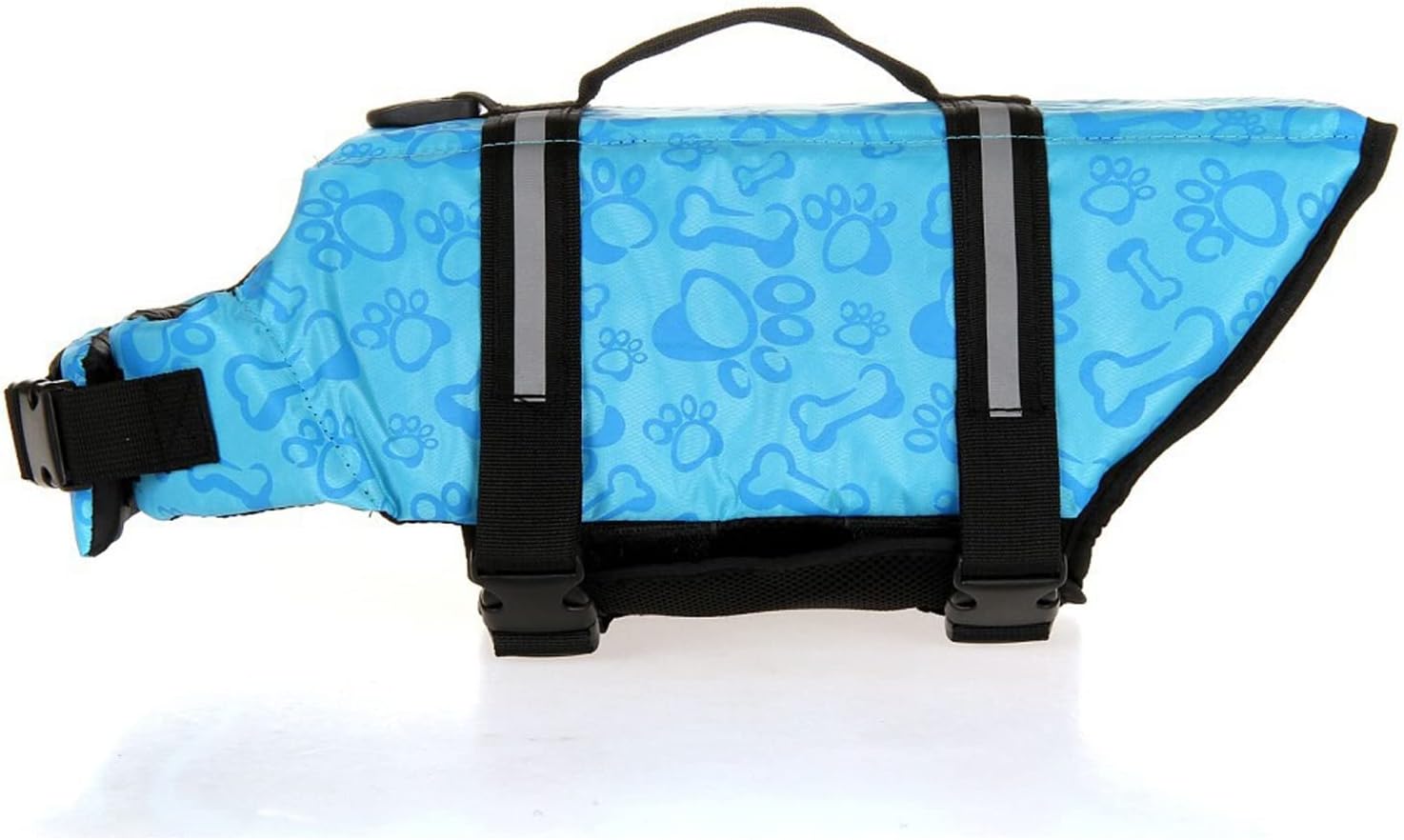 Product DescriptionChic paw, bone pattern and exceeding bright color make your pet more cute and cuddly, dogs safety float keeping your beloved visible at swimming pool.High grade polyester oxford & nylon fabric, mesh fabric and pearl cotton foam ensuring the high flotation and the security of your pet under the water.puppy life vests for swimming boating which offer your beloved pet the most considerate care, choose a perfect life preserver for dogs.your furry baby will enjoy playing in the water at standing depth, he/she will be a swimmer!Strong Sticker Straps & Buckle· Strong sticker straps keep securely fastened, also give your dog a comfort fit, easy to put on and take off. Suitable for all water sport activities.Super Sturdy Rescue Handle & D-Ring· The resuce handle on back is designed to help you control your puppy conveniently in water, aim to bring our fur friend safer swimming.Durable and Adjustable Nylon Straps· Thicken webbing around the belly for sturdy protection. Adjustable straps is sewnd on the dog float assure custom fit specifically for your dog's chest, belly.Unique Reflective Strip· Never lose sight of your dog with high-visibility. High visibility enhance the fun and safety of your dogs in swimming.Product detailsPackage Dimensions : 7.64 x 7.36 x 2.17 inches; 2.2lbpacking list:1* pet life jacket (other items shown in the picture are not included)