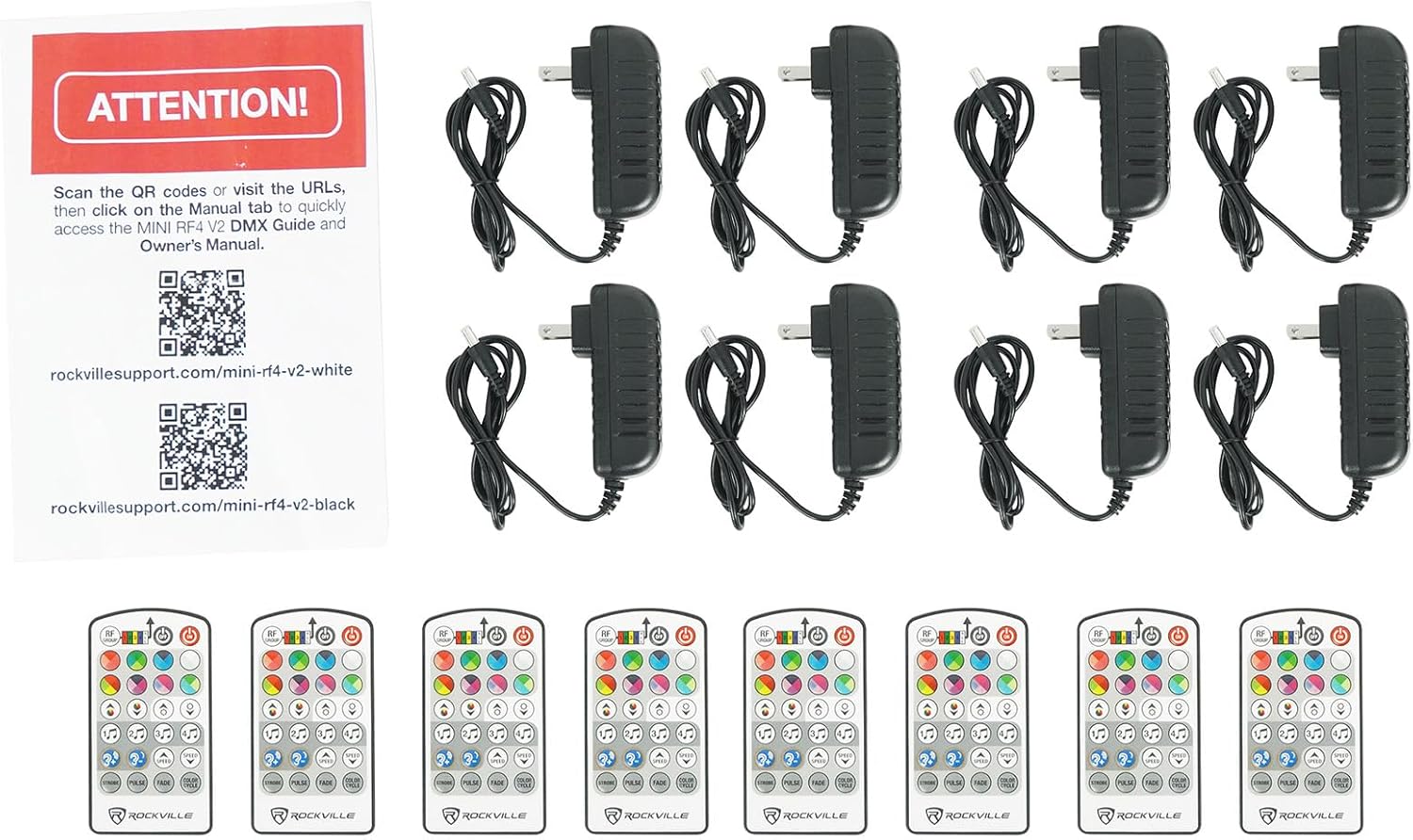 | Included Components | 8 x Power cable, 8 x RF Remote, 8 x Wash Up Light, Charging flight case, Warranty card |