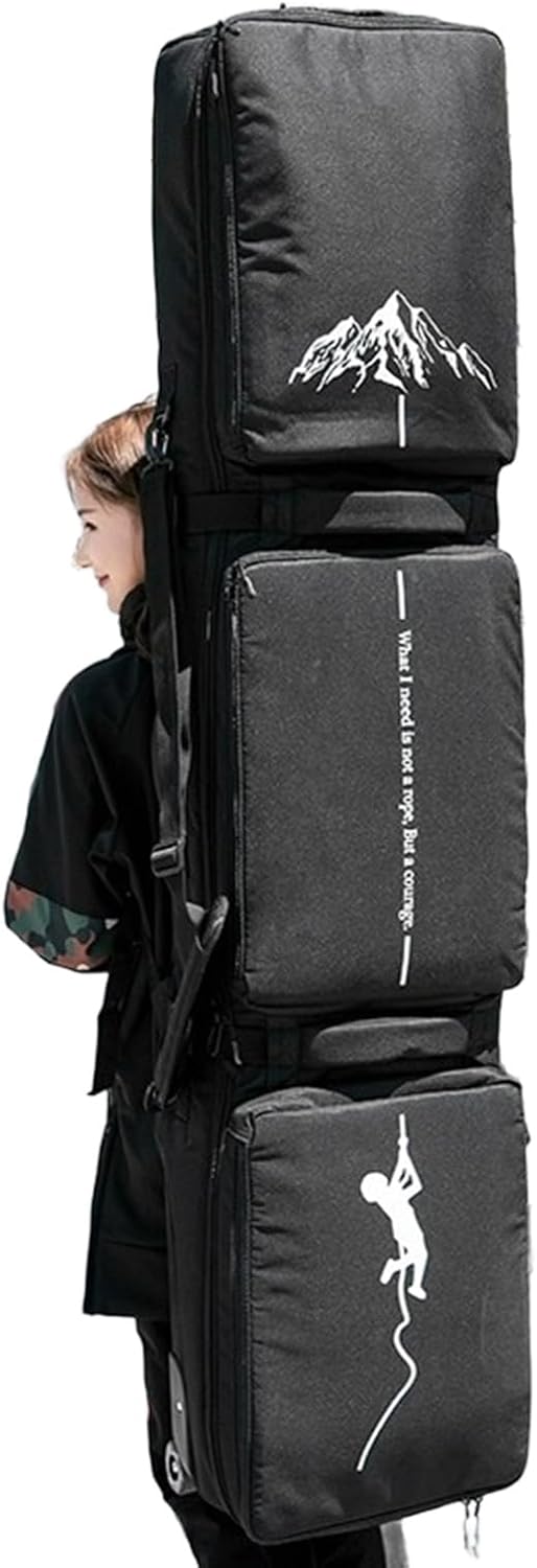 Wheelie Snowboard Bag Portable Multipurpose Skis BagFeature:- Skis and Snow board general purpose.- Large capacity, all ski equipments (Boards, boots,helmet,protective gear,ski clothes) full in a bag.- 3 separate store pockets, classified and stored, more hygienic and convenient.- Fashionable design, bright color,with a high recognition,avoid loss in public place, easy to recognize.- The thickened handlebars, more comfortable to ease the friction between the hand and the straps.- Three Ways for carry, tote,shoulders bag and messengers bag.Product parameters:Name: Snowboard bag with wheelsFabric: TPU Waterproof FabricFeatures: waterproof, wear-resistant, wet and dry partition, Large Capacity/Three Compartments/Effort-Saving HandlesBack method: Handheld / Slanted / Shoulders / TowedColor: Black A, Black B, White A, White B, Khaki, BlueSize: 65.3×14.2×7.08 inch, 68.5×14.2×7.08 inchWeight: Approx. 3kgApplication: single board / double boardBest use: Snowboarding, Skiing, Camping and other outdoorIncludes:1 x Roller Snowboard BagPlease Attention:-- Due to different light and screen, the color of the item may be slightly different from the image.-- Due to manual measurement, please leave a distance of 1-2 cm. Please understand us, thank you very much.