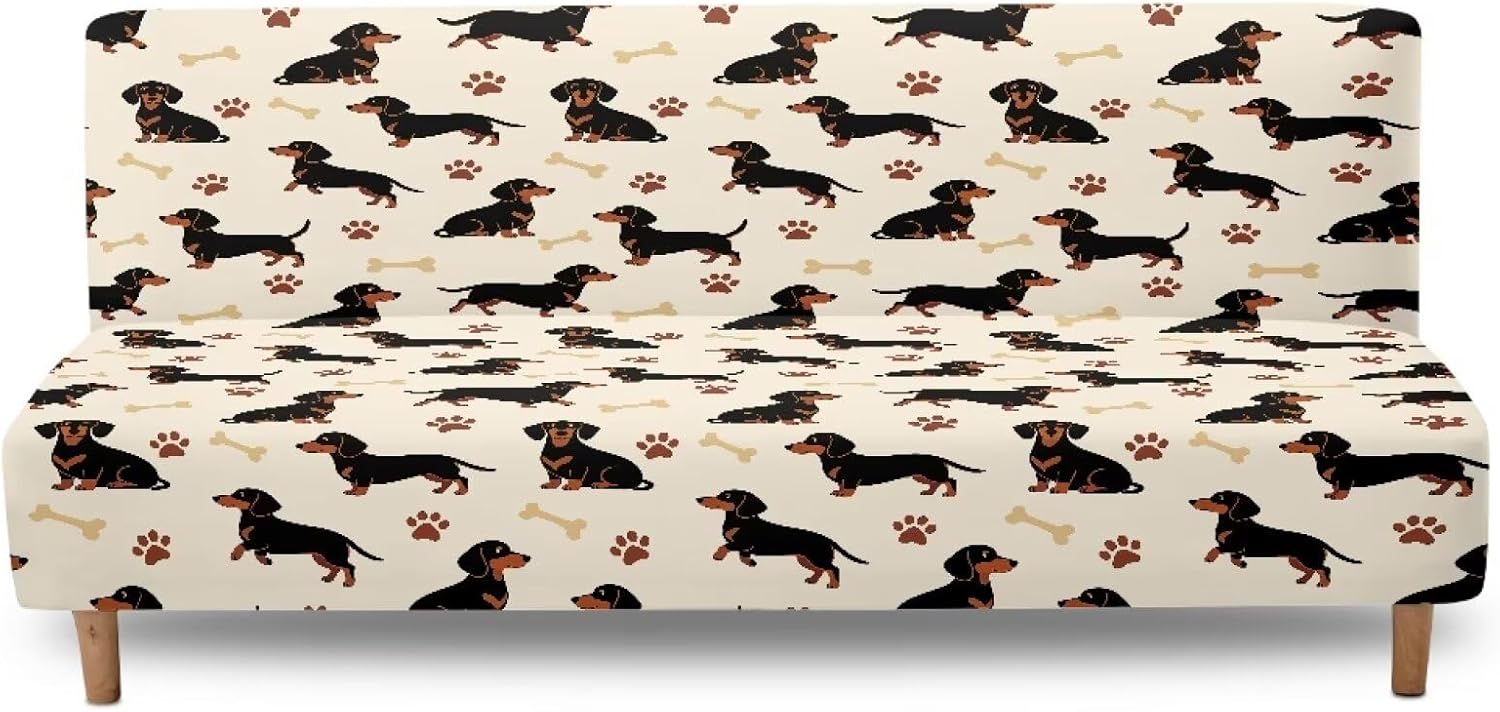 Crafted from a polyester and spandex blend, this armless futon cover offers the perfect balance of softness and stretch for a snug fit. The scratch-resistant, breathable fabric stands up to daily wear and stays cool during long sits, maintaining a neat appearance and comfy touch all day. Full-coverage design shields your futon sofa from daily wear, pet scratches, and food spills; the elastic bottom ensures a snug, non-slip fit to keep the cover in place during use.Its stretch allows this cover to complement most furniture styles. This futon sofa cover is designed for seat widths between 68 to 85 inches — one size fits most. Please measure your furniture before ordering and refer to the measurement guide in the product images for details.Crafted with thermal transfer printing, the futon cover features richer, more vibrant patterns and colors; it locks in color to resist fading and peeling, boosts product lifespan, and revitalizes your futon couch with a fresh new look.Wrinkle-resistant and machine washable for hassle-free care. Wash separately in cold water on a gentle cycle; avoid bleach.