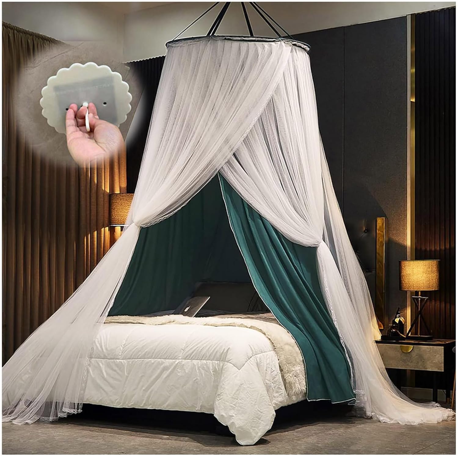 This double-layer round dome canopy is full of romantic atmosphere, which can decorate the bedroom beautifully, suitable for most beds, including children's beds, single beds, and double beds.Features:1.Romantic Bedroom Decoration. Add more romance and elegance to the room by hanging this mosquito net bed canopy. The luxurious royal design style of bed curtains transform your indoor room into a charming palace. You can also decorate it with fairy lights and dream catchers, the mosquito netting will be more pretty and dreamy. Ideal for both indoor or outdoor uses.2.Unique double-layer yarn design for the double layer princess round dome canopies, creates with excellent shading effect, thus you can fall asleep peacefully like at night. It is a very good sleep tool for privacy lovers and daytime sleepers. Choose this decor canopy for the kids who live with sisters together, or who feels insecure, they will like the separate private space.4.This mosquito net bed canopy measures 39.3 inches in diameter at the top, 106 inches high, and 355 inches around the base. Suitable for all types of beds, including single beds, double beds, double beds, and king-size beds. Comes with all suspension kits for easy installation, use sticky hooks to hang on the ceiling. Care details: Do not bleach, rub, wring out or dry. Hand wash cold or drip dry in a cool place.Package contains:a bed tent yarnone sticky hook