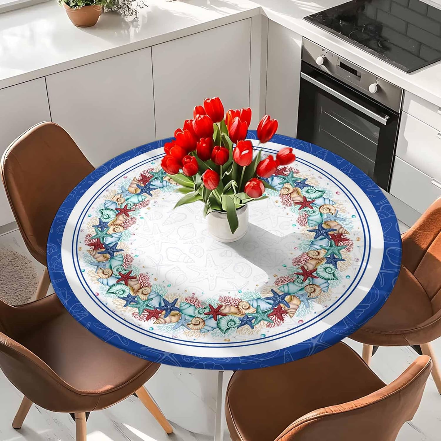 Efficient Elastic Edge Design Table cover desinged with an elastic edge keep the tablecloth tightly fitted and stay free from moving / falling off. Don't worry beverage spilling when people moved from the table. Water Repellent This soft and durable tablecloth is made of premium polyester fabric with spill-against treatment. All liquids bead up for easy cleaning. Premium Quality Featuring a color fast dye polyester fabric, this table top covers easily protect your tables from scratches, stains and sun lights. EYE-CATCHING ACCESSORY TO ELEVATE ANY MEAL Upgrade any dining occasion or special events with this stunning tablecloth, can be easily paired with tableware, create a fun and festive atmosphere while protecting your table. Versatile Use Suitable for buffet dinners, dining table, tea table, party, birthday, cafes, banquet, picnic, backyard BBQ, camping, patio,barbecue, indoor, outdoor and everyday use. Multiple sizes, styles and rich vibrant colors available. Please measure the size before purchasing. Recommended wipe it immediately with damp cloth after every use.