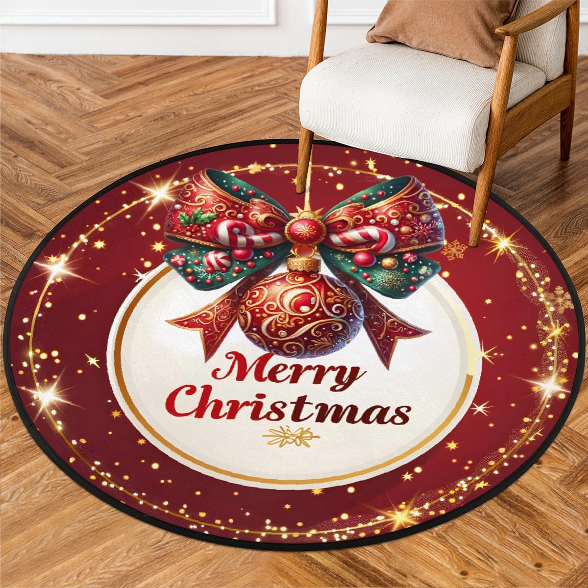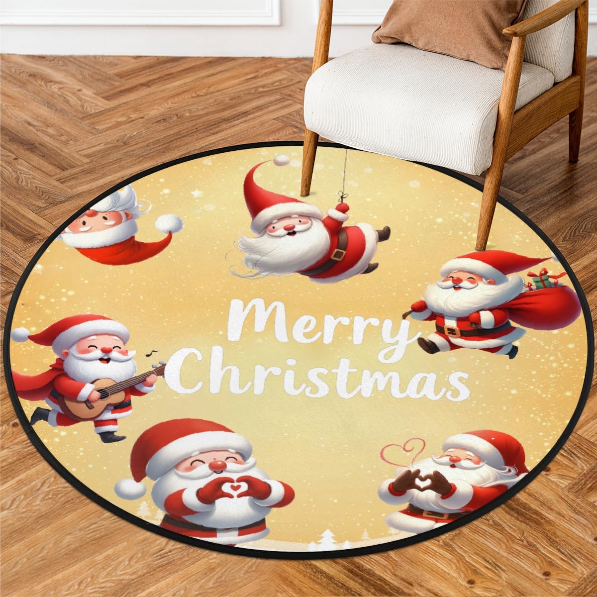 Home, a safe and comfortable choice. Material: Made of high-quality and durability ultra-fine polyester fiber fabric, with a durability anti slip lining, water absorption, and a soft touch; The floor should be kept dry and perfect for use in front of bathroom counters, sinks, washbenches, showers or bathtubs, as well as in children's bathrooms, residences, apartments, RVs, campers, cabins, dormitories, etc; Personalized and cute printed pattern design, can be used as picnic mats, play mats, children's anti-skid mats, or as art and craft mats or pet mats; Floor mat note: For the convenience of logistics transportation, the floor mat will be folded and shipped. To prevent slipping, use a rug pad on hard floors. Keep away from heat sources to prevent fire hazards. Although made from generally safe materials, some individuals may have allergic reactions. Always test a small, hidden area before full installation. Unfold the rug upon receipt and allow creases to relax within a week. Machine wash on gentle cycle with cold water for cleaning. Product size: diameter approximately 33.88、63 inches; Care method: Washable with water or dry cleaned, stains can be treated with regular vacuum cleaning and mild cleaning agents or carpet cleaners; The product includes: 1 circular floor mat;