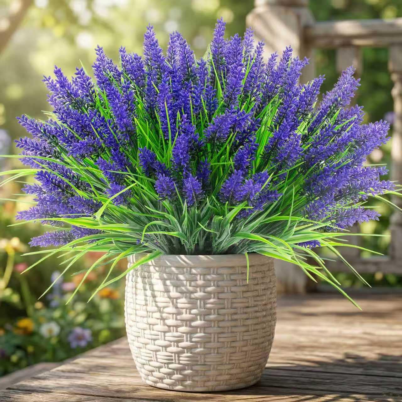 Bring the beauty of nature indoors with these artificial outdoor flowers from Rowfad. These lavender fake plants with purple flowers are perfect for adding a touch of vibrant color and lifelike charm to your home or office decor. Crafted from high-quality materials, these faux flowers are incredibly realistic and virtually indistinguishable from the real thing. Whether you place them in a pot, window garden, hanging planter, or along a pathway, they'll instantly uplift any space with their delicate blooms and lush green stems. these artificial plants are an ideal size for decorating shelves, tables, or porches. Low-maintenance and long-lasting, they'll retain their fresh, radiant appearance for years to come without any watering or pruning required. Elevate your indoor or outdoor living areas with these stunning artificial lavender flowers from Rowfad.
