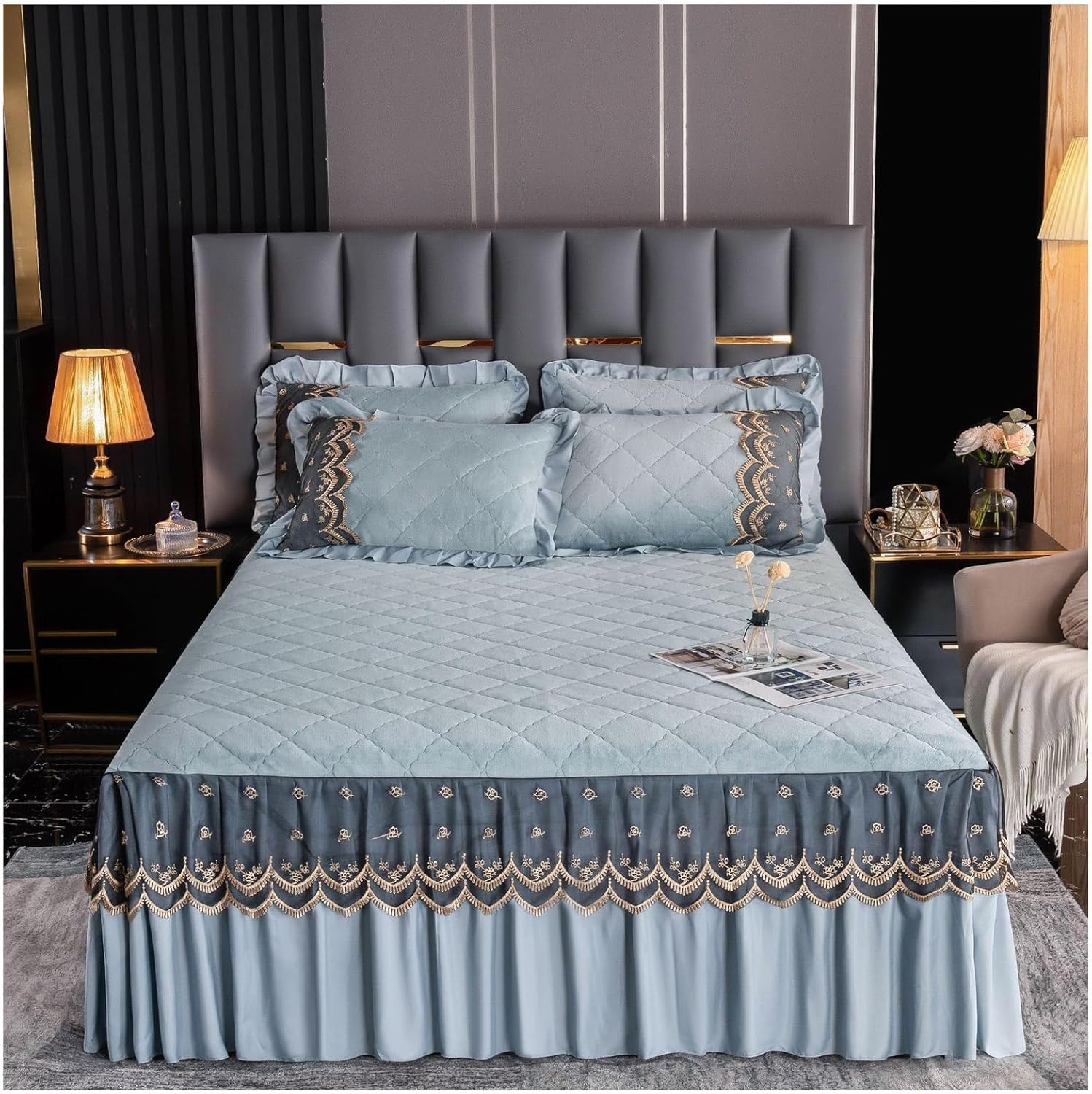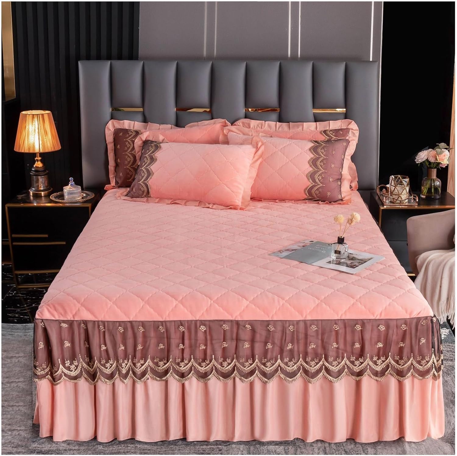 Bedskirt quilted bedspread set thickened milk velvet crystal velvet sheetsThe "bedspread" can be used all year round and is a great product to decorate the bedroom. Used to protect the bed, beautify the home, and fill your home with a romantic and warm atmosphere!Specification:Name: bed skirt bedspreadFabric: Milk velvetTechnology: Polyester quilting technologyColor: pink jade, blue, purple, orange, red, pink, green, dark gray, watermelon red, apricot yellowSize:120cmx200cm=47X78.74in150X200cm =59X78.74in180X200cm=70.86X78.74in,180X220cm=70.86X86.61in200X220cm=78.74X86.61inPillowcase size: 48X74cm=18.89X29.13in▶ Set includes: 1 x bed skirt + 2 pillowcasesNotice:*Due to manual measurement, an error of 1-2 cm is allowed.*Although we try to make the actual product color as close as possible, depending on your monitor, the product color may appear slightly different from the actual brightness and color.
