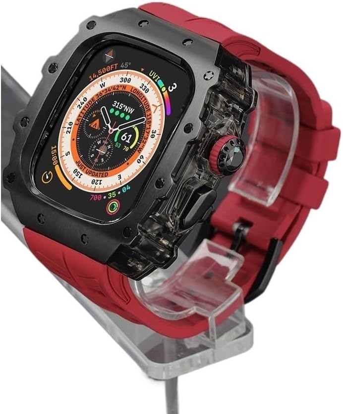 Rugged Stainless Steel Case Mod Kit for Apple Watch Series 10 46mm 9/8/7 45mm Ultra 2 49mm 44mm Metal Cover Rubber Sport Bands Men for Iwatch