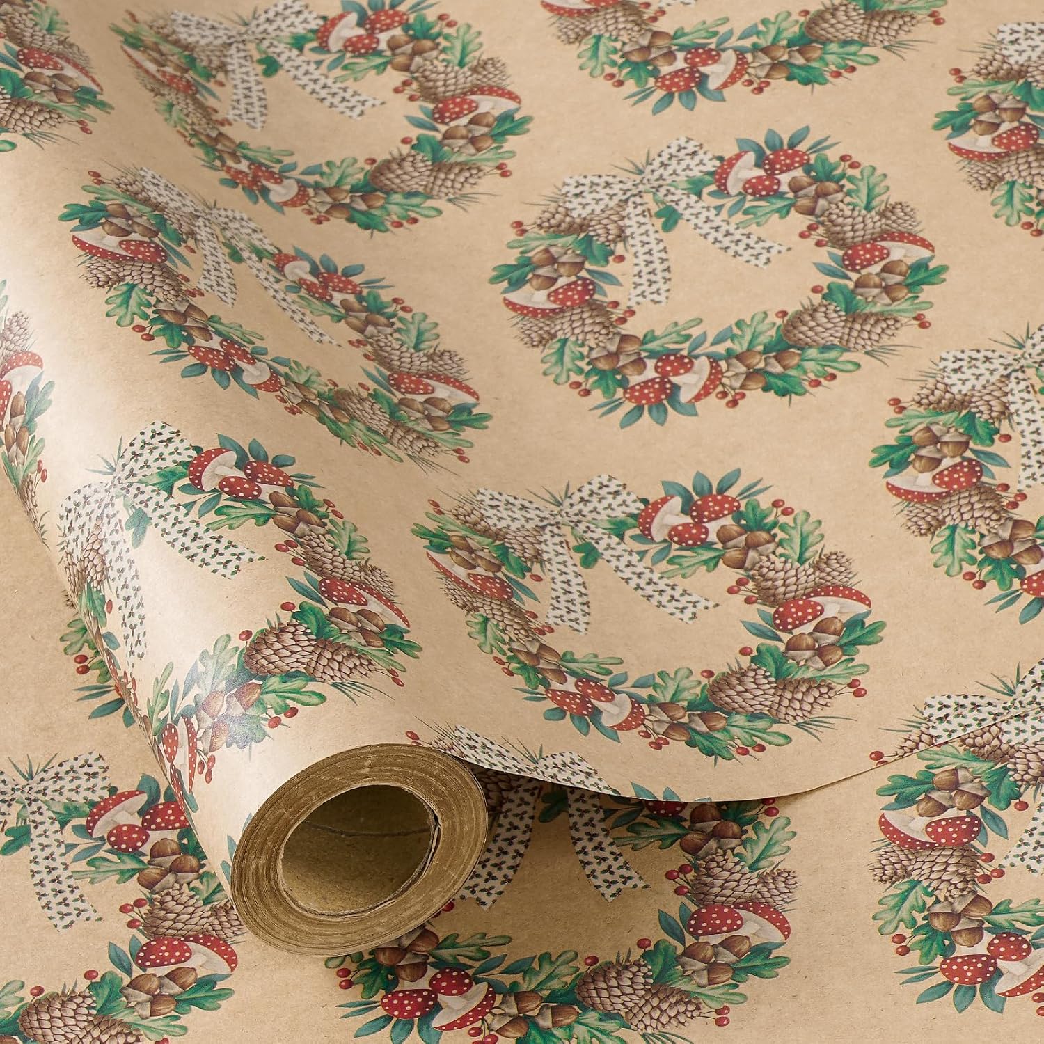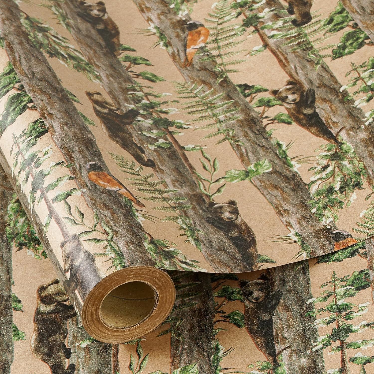 Bring the magic of the forest to your holiday gifting with the Christmas wrapping paper roll. This jumbo roll features a beautiful woodland animal design with playful foxes, gentle reindeer, cozy rabbits, squirrels and hedgehogs, all sketched in a warm kraft tone against a deep green backdrop. Accented by snowflakes, holly leaves, pine branche and stars, this paper blends nature-inspired charm with seasonal cheer.Crafted from thick and durable kraft paper, it provides both a quality feel and practical performance, easy to cut, fold and tape, with a natural finish that adds elegance to your gifts. This jumbo roll is 30 inches wide by 32.8 feet long, perfect for wrapping small to latge-sized gifts without excess waste.Whether you're preparing for a family Christmas gifts, a winter birthday party or a cozy classroom celebration, this charming rustic design brings joy and personality to every package.