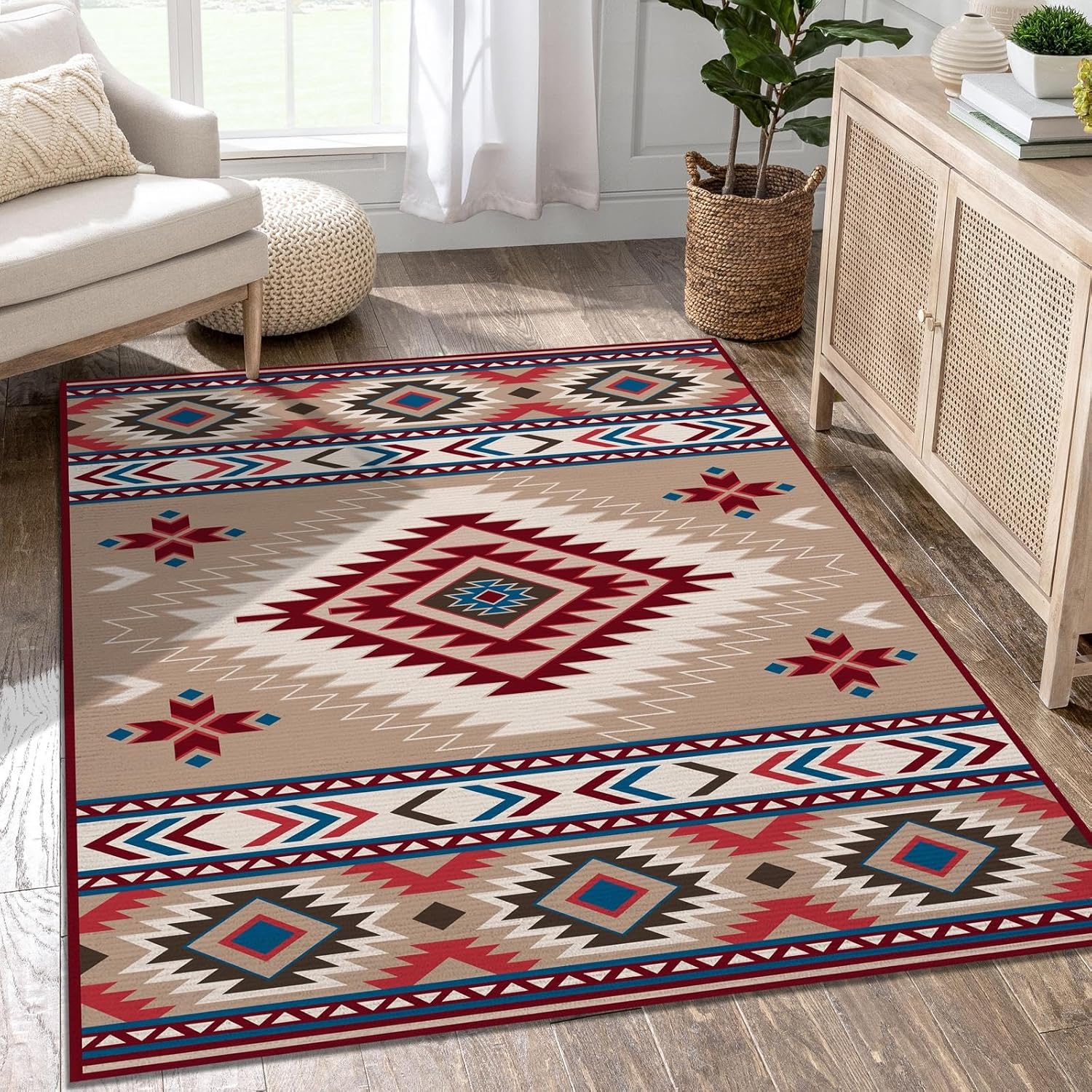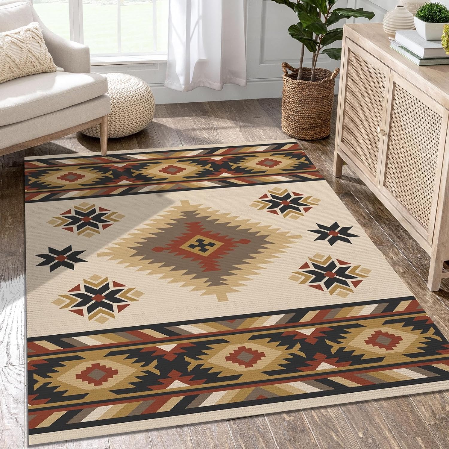 ★ ★ ★ Decorative Home Collection ★ ★ ★- Product Describe: Native American area rugs, southwest style area rugs, western rugs, Aztec rugs, southwestern rug- Introducing our decorative Home Collection, where style meets durability effortlessly: Immerse yourself in the charm of our Native American area rug, exuding the timeless allure of southwest style.- Crafted meticulously, these rugs boast a thickness of 8cm, offering both plush comfort and lasting resilience Our commitment to quality is evident in the choice of material.- Material: High-quality Polyester ensures easy maintenance, exceptional strength, and shape retention, setting our western area rug apart.- Our Aztec rug is easy to clean with moisture-resistant, non-slip, anti-static, and wear-resistant properties, making it a cost-effective investment for your home. Thanks to advanced weaving and dyeing technology, our rugs boast a luxuriously soft texture, excellent water absorption, and resistance to piling. The vibrant colors remain brilliant over time, adding a touch of elegance to any room's decor.- With an array of captivating designs, including Navajo rugs and tribal patterns, you'll be spoilt for choice. Say goodbye to the endless search for the perfect rustic accent piece for your living room, bedroom, lodge, cabin, or office.**Note: Please note that slight color deviation may occur due to variations in production batches and photography lighting effects.