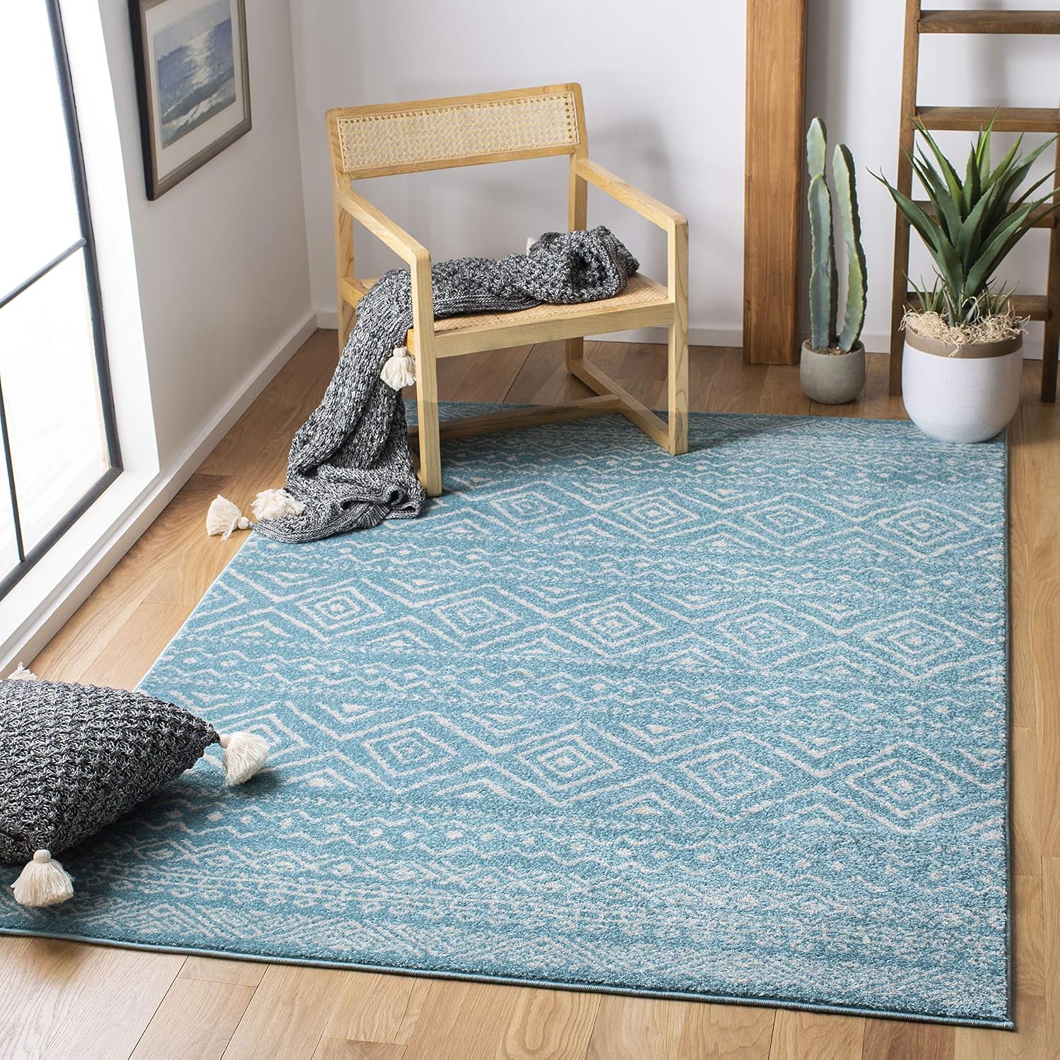 The SAFAVIEH Tulum Collection brings refreshing style to any space with its versatile patterns, trendy hues, and rustic, craft-inspired motifs that add warm boho character to modern or transitional décor. Machine-woven from soft synthetic yarns, each rug features a thin, easy-to-manage pile that provides a comfortable feel underfoot while remaining durable for everyday living. Rug colors may vary slightly due to dye lot differences, lighting, and individual screen settings. Upon arrival, simply reverse roll and allow any temporary creases to settle naturally. For added comfort, stability, and floor protection, a SAFAVIEH rug pad is recommended. Rug sizes may vary slightly.