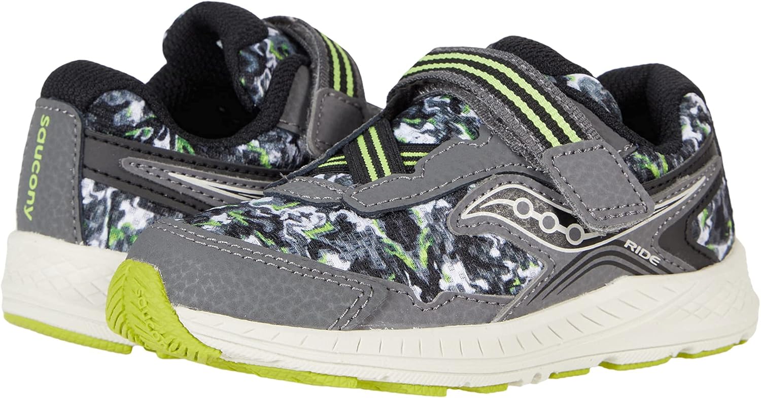 No matter the adventure, The ride is smooth in saucony’s ride 10 jr designed especially for little feet. A midsole for a close to the ground feel, anti-stink lining for, well you know, and an alternative closure let’s them put them on by themselves!. Saucony is among the most respected names in running shoes. They offer a wide range of running and walking shoes, each with the Saucony trademark fit, feel, and performance. They've spent years studying the biomechanics of top athletes because the goal is to develop creatively engineered systems that maximize your performance, allowing you to focus on the activity instead of the equipment. From studies have come many innovative Saucony concepts. Advanced technologies like Grid, the first sole-based stability and cushioning system, provide an advantage to athletes of all types.