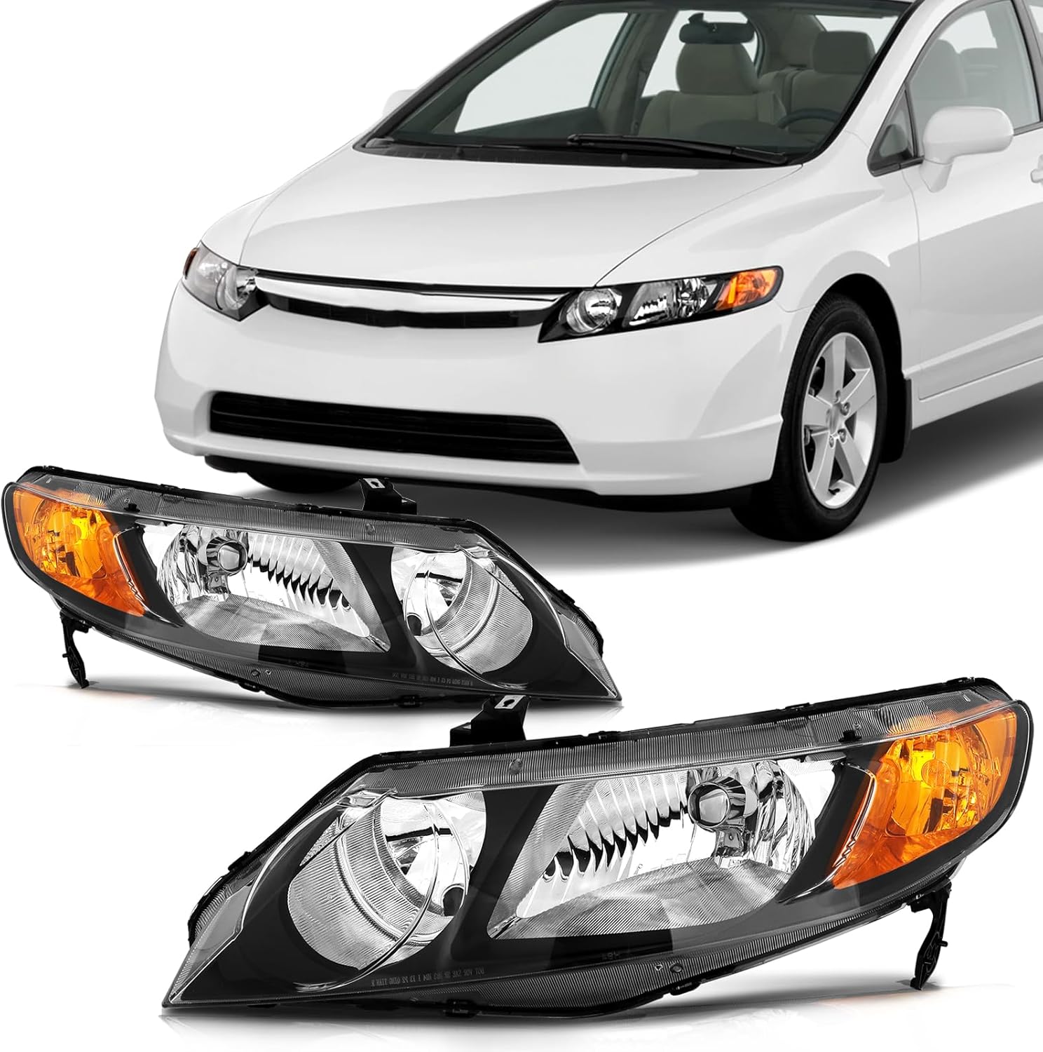 SCITOO Headlight Assembly Fits For Honda For Accord Sedan 4Dr 2013-2015 headlamp in Black Housing Amber Reflector Clear Lens