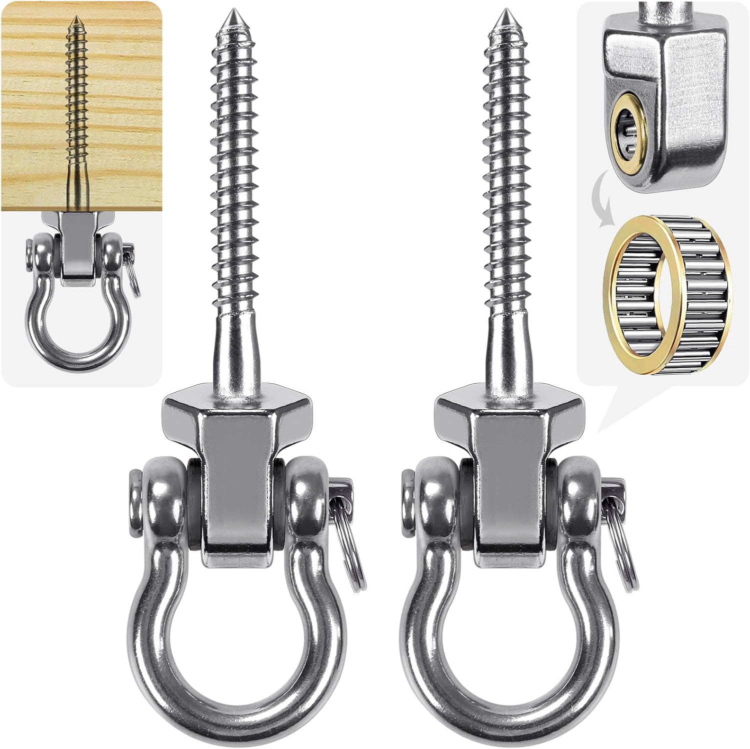 • 【Flexible and Quiet】The innovative design allows 180° rotation, giving you more freedom and variety when hanging swings. Customized bearings and rubber rings reduce metal friction and noise, bringing you a smooth and quiet swing experience