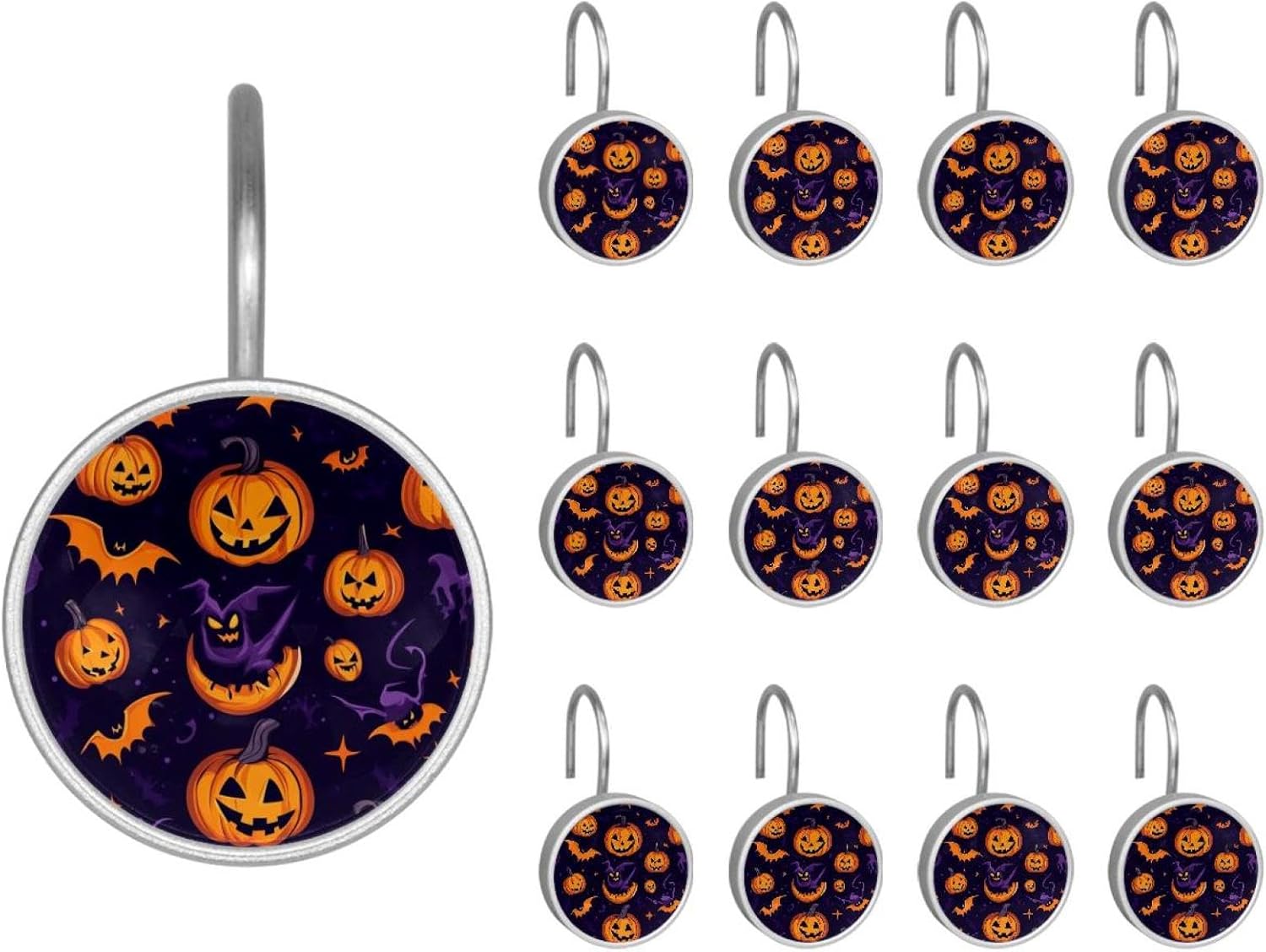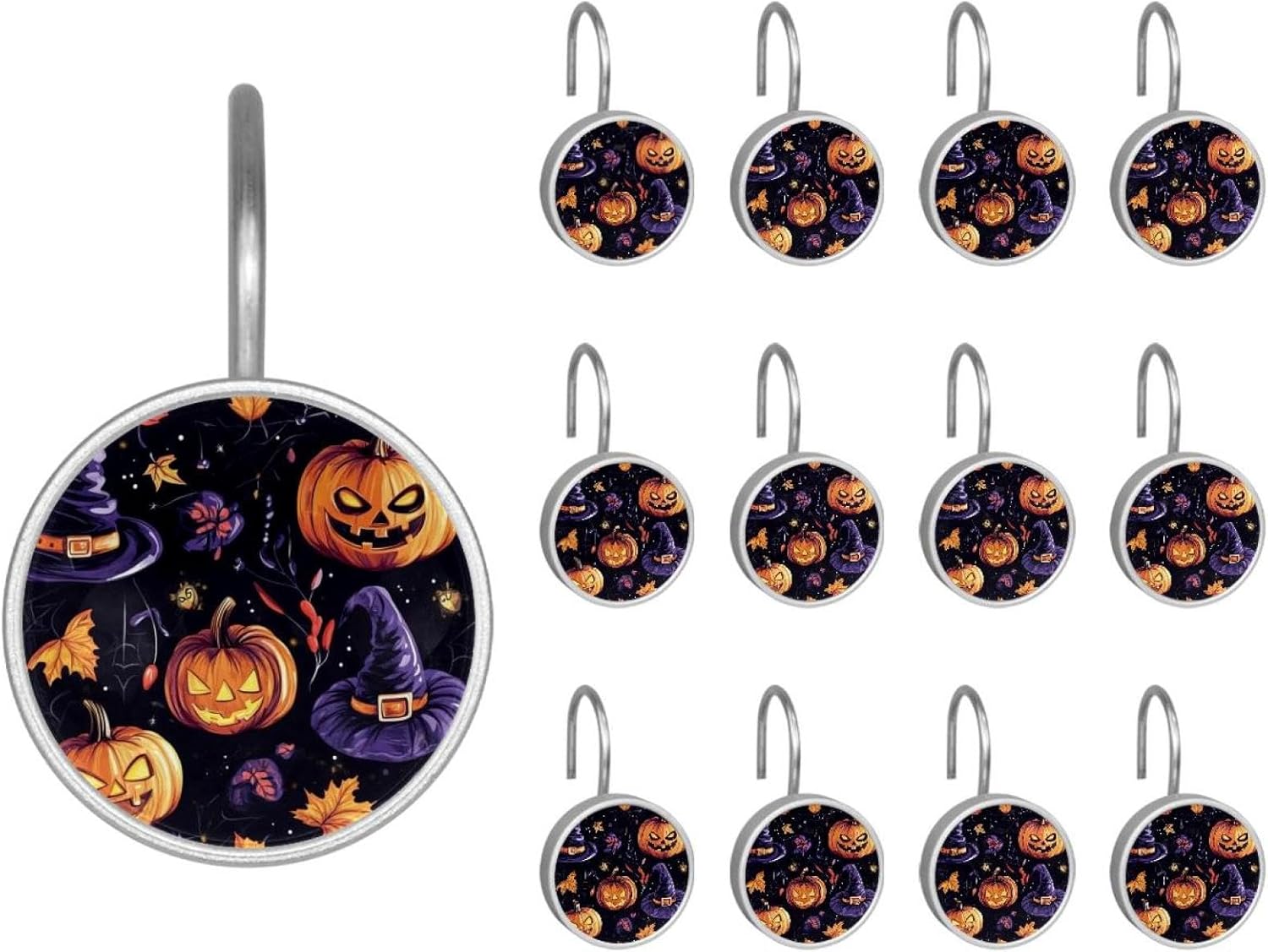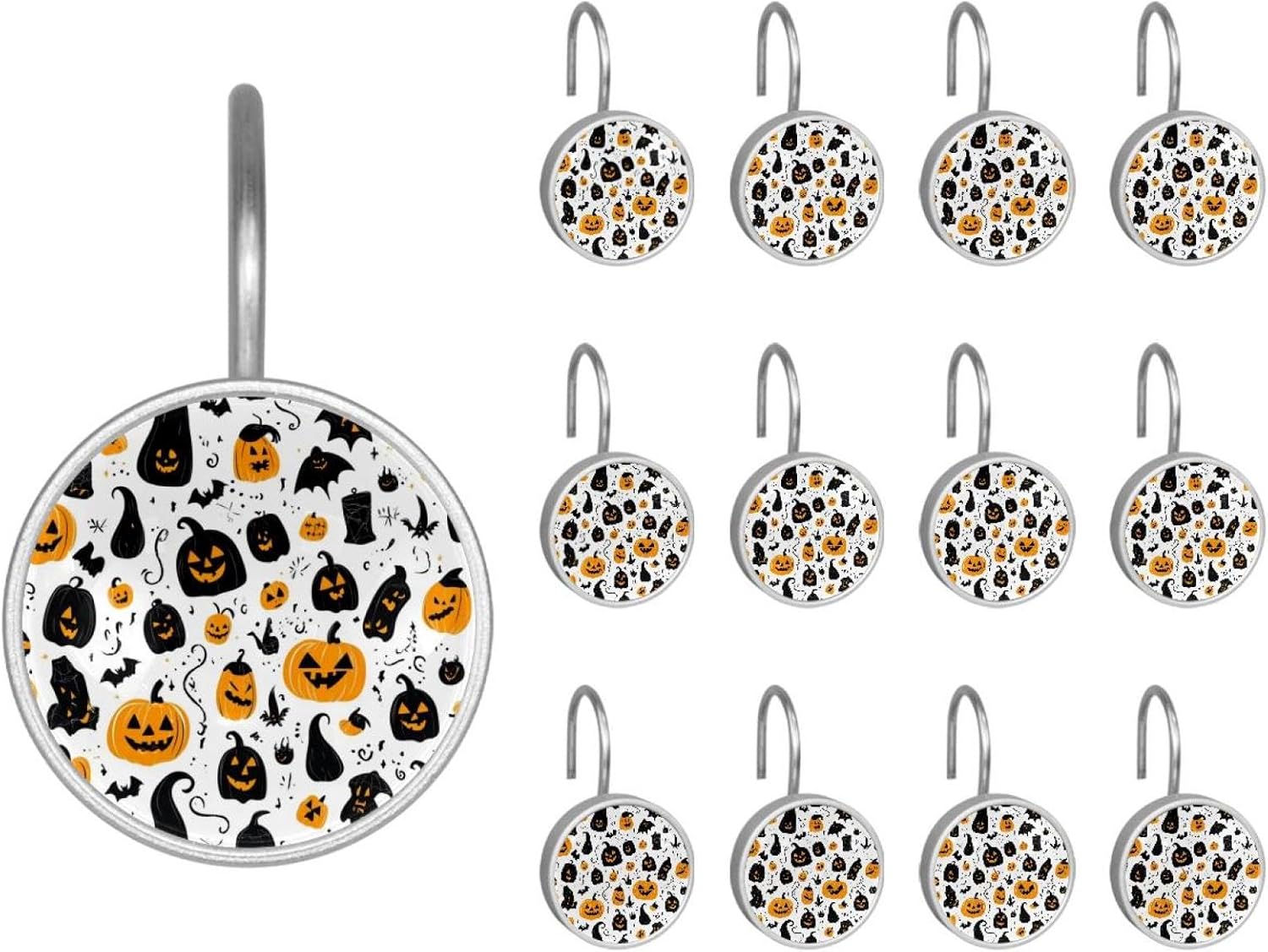 MATERIAL: glass, stainless steel. These shower curtain hooks can be decoration bathroom and will be long-lasting.12 pieces of shower curtain hooks, round crystal glass decoration, printed patterns, silver hooks to match various styles of bathroom shower curtains. SIZE: Crystal glass diameter of round shower curtain hook is 1.45x1.45in/ 3.7x3.7cm. The shower curtain hooks diameter is about 1.1in, 12 pieces shower curtain hooks are suitable for rod of 8-28mm(0.3"-1.1"). RUST RESISTANT:Shower hooks are made of stainless steel and crystal glass, which is durable, rust-proof and corrosion-resistant, it will not rust suitable for wet bathroom environment. EASY TO INSTALL:Hand the shower curtain hooks hold securely on straight or curved shower curtain rods,slid easily and smoothly. Easy to install and decorate your bathroom. BEAUTIFUL AND ELEGANT:Beautiful Love hook add charming scenery for your bathroom, baby room, bedroom, living room, and the gorgeous style is easy to match with any kinds of bathroom shower curtain. EASY GLIDE: Open and close your shower curtain quickly and easily with the Shower Hooks, easily glides on shower curtain rods and tension rods. No snagging; no effort; no hassle PACKAGE: 12 shower curtain hooks in a pack.The bathroom curtain hook has a smooth appearance and can be hung on the pole to pull it at will. Special price 12 sets to meet your needs.
