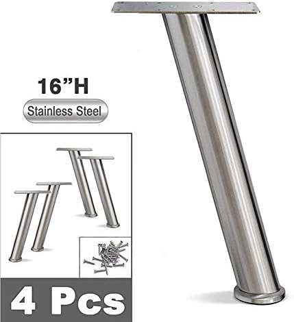 Stainless Steel Meal Sofa Legs, Furniture Legs, Angled Round Tube, Brushed Stainless Steel Finish, 4-7/8"H - Set of 4 NEW
