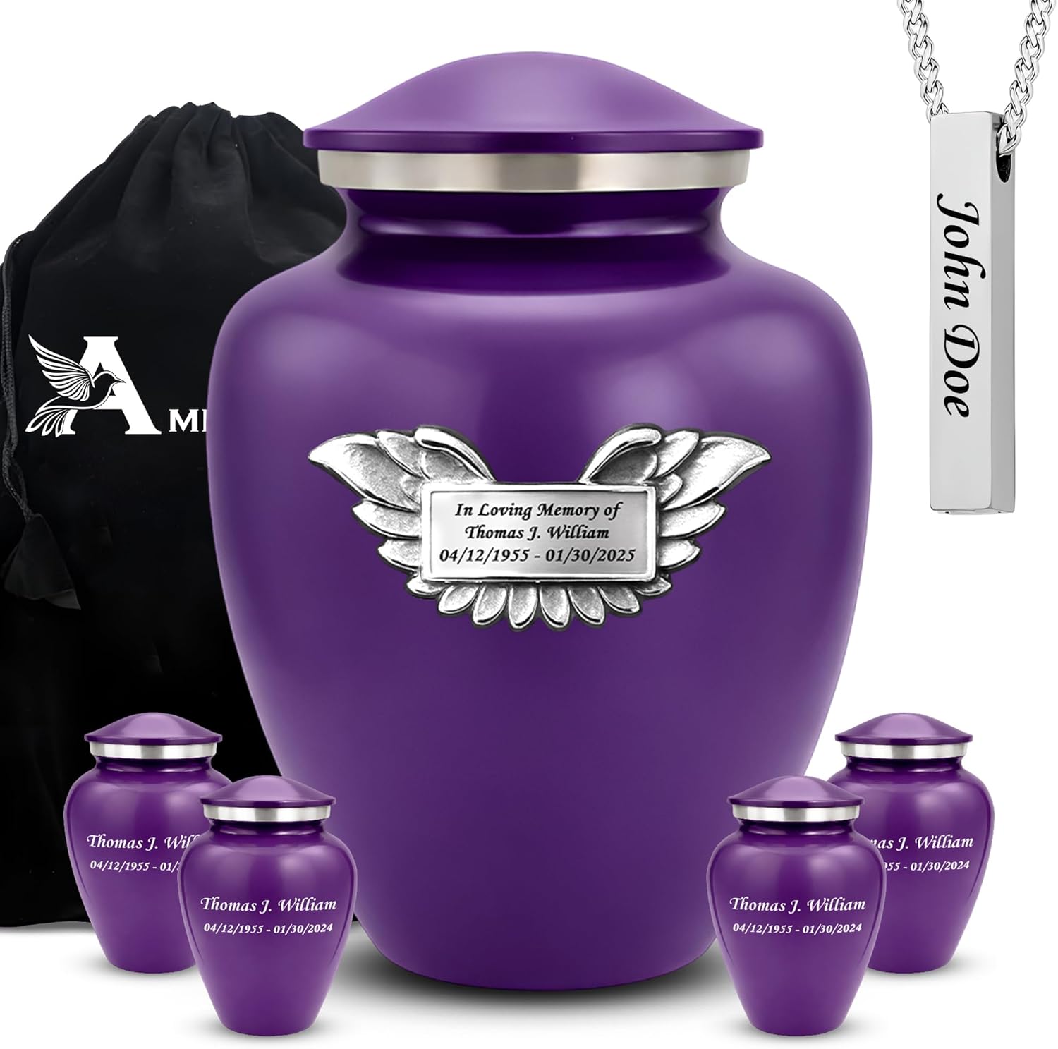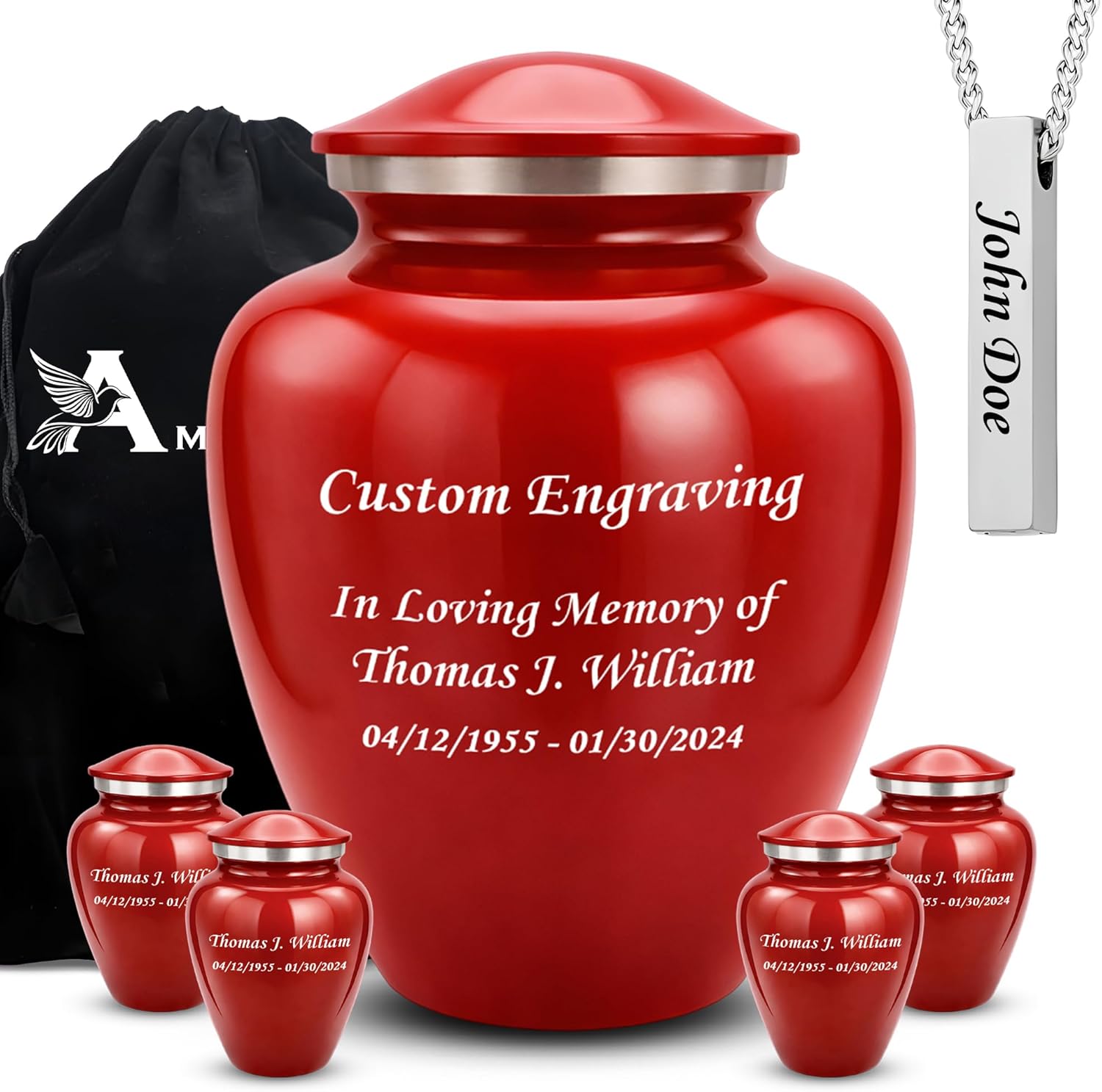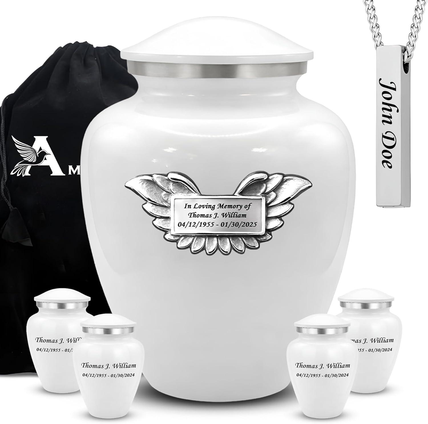Celebrate Your Loved One’s Life With The Serenity Pearl Memorial Urn Set, A Timeless Symbol Of Peace, Eternity, And Everlasting Love. Inspired By Tranquil Design And Gentle Symbolism, This Memorial Reflects Inner Calm, Spiritual Harmony, And A Bond That Never Fades. The Large Adult Urn Measures 10 X 7 X 7 Inches And Securely Holds Up To 200 Cubic Inches Of Ashes. This Complete Set Includes 4 Keepsake Urns And 2 Memorial Necklace Urns, Allowing Family Members To Share And Keep Cherished Memories Close. Handcrafted From Solid Metal With A Protective Enamel Finish, Each Piece Is Carefully Inspected For Lasting Strength, Beauty, And Dignity—More Than An Urn, A Serene And Heartfelt Tribute Of Remembrance.