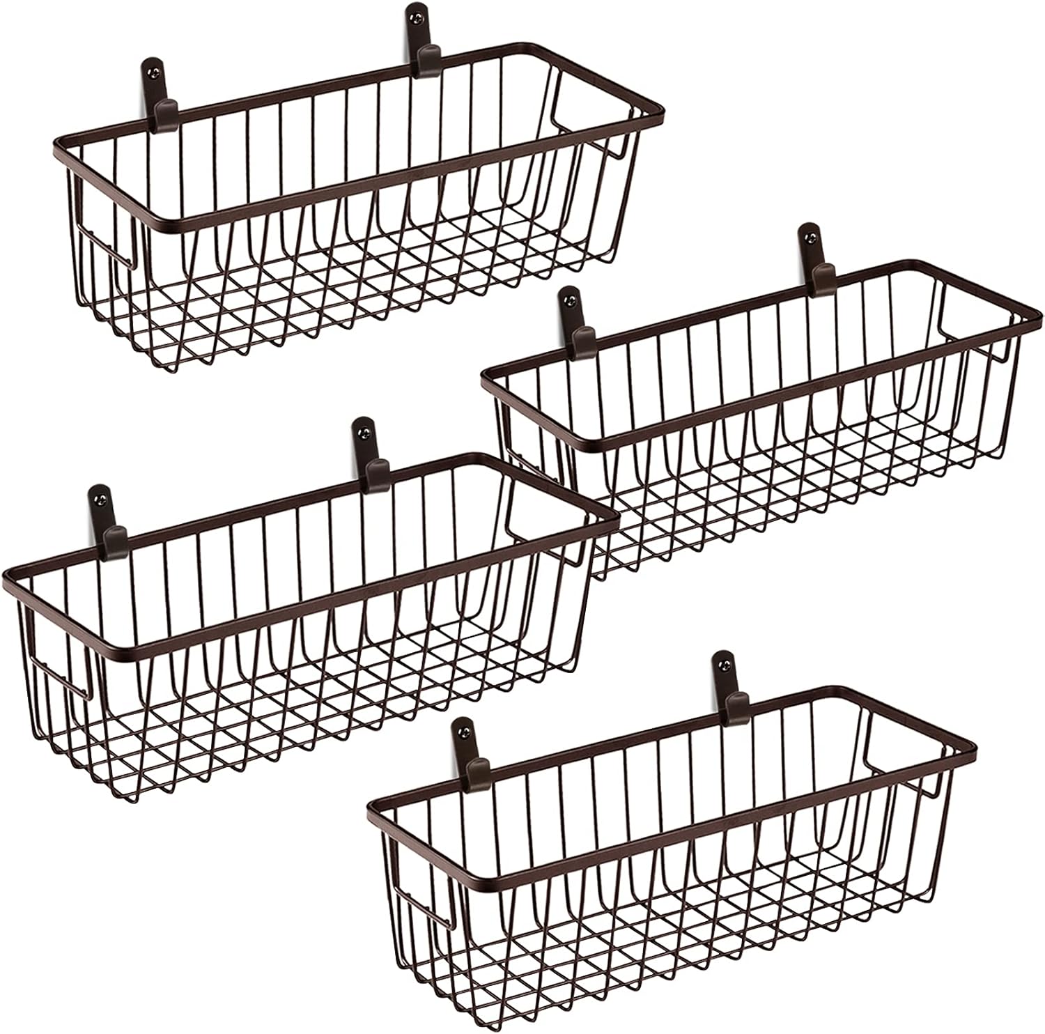 SheeChung Farmhouse Metal Wire Bin Basket with Wall Mount - Small, 4 Pack - Portable Hanging Wall Basket, Rustic Home Storage Organizer for Cabinets, Pantry, Closets, Bathroom, Kitchen,Bedroom(Black)