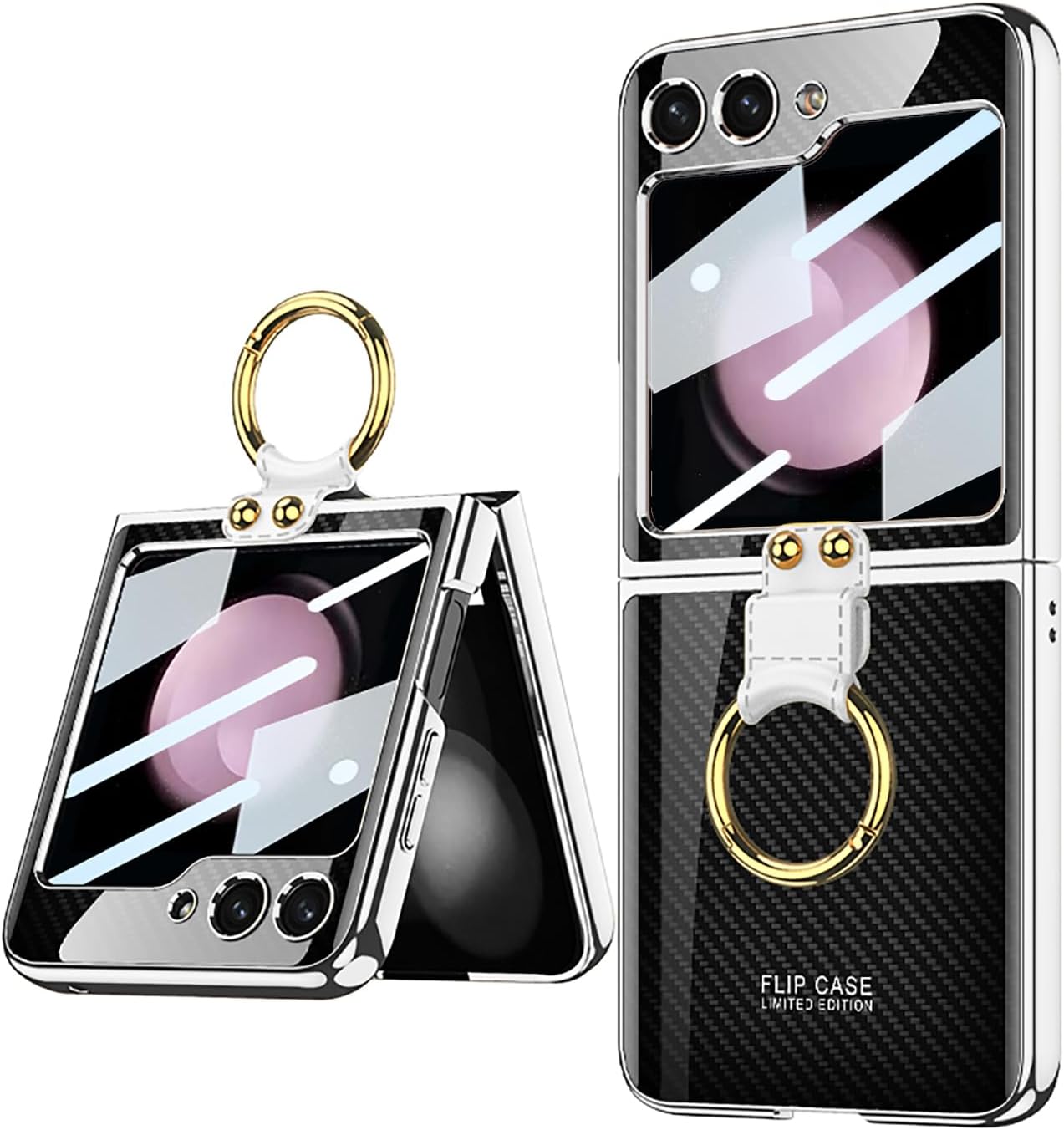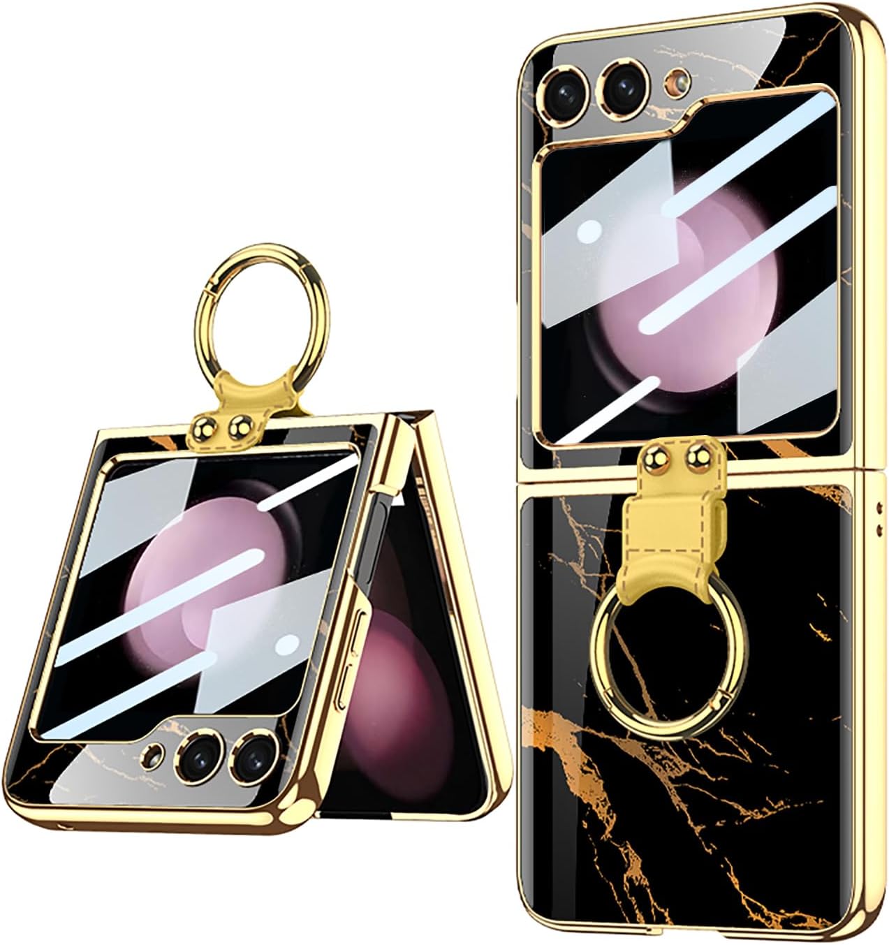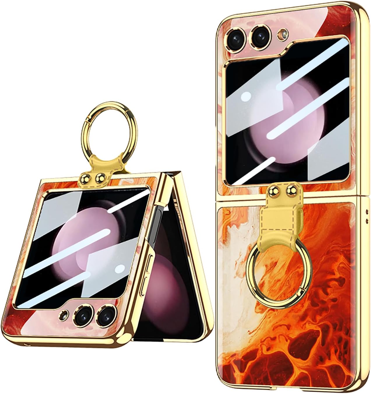 SHIEID upholds the concept of providing the high quality products and customer first, and provide customers with the best quality products and services. SHIEID Galaxy Z Flip3 Case with Ring Holder and Small Screen Protection - Ultra-Thin Painted Glass Cover for Z Flip3 Phone Case STYLISH & FUNCTIONALThis Galaxy Z Flip3 case features a vibrant painted glass design with a metal ring holder. The ring can be used as a stand for hands-free viewing and ensures a secure grip on your device. BUILT-IN SCREEN PROTECTORThe Galaxy Flip3 case includes a high-definition tempered glass film that maintains image clarity and protects the small screen, preserving the phone’s sleek lines and providing robust protection. FULL COVERAGEDesigned for the Galaxy Z Flip3, this ZFlip 3 case offers complete protection with precise cutouts for buttons and ports. The 9H tempered glass adds anti-drop and anti-scratch features, ensuring your device is well-protected from daily wear and tear. WIRELESS CHARGING COMPATIBLEEnjoy the convenience of wireless charging without removing the case. This for Z Flip3 case supports wireless charging, offering full protection while maintaining ease of use. PREMIUM GIFTThe painted art style of this Z Flip 3 case adds a luxurious touch to your device, making it an excellent gift choice for friends and loved ones. The ring holder can also be used as a stand, freeing your hands for a more comfortable viewing experience.