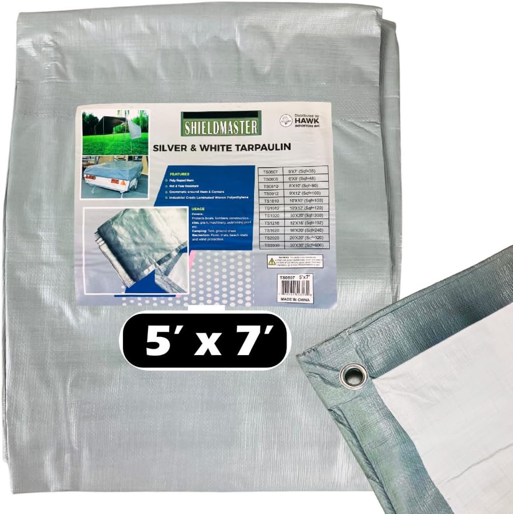 Introducing our Silver and White Tarp, a versatile and robust solution designed for a wide range of outdoor applications. This tarp features a dual-sided design with silver on one side and white on the other, offering flexibility and functionality. With a substantial 165 GSM weight, a thickness of around 10 mil, a durable poly roped hem, and reinforced grommets along the hem and corners, this tarp is built to withstand tough conditions and provide reliable protection. Crafted from industrial-grade laminated woven polyethylene, it's the go-to choice for demanding outdoor projects. Invest in the reliability and versatility of the Silver and White Tarp. Its industrial-grade construction, dual-sided design, and tear-resistant properties make it a top choice for various outdoor projects. Whether you're a DIY enthusiast or a professional, this tarp is the dependable solution for your needs. MULTIPURPOSE USE: These tarps are used to cover/shelter boats, truck, cars, motor vehicles, industrial or farm equipment, outdoor patio furniture, barbecue grills, backyard pool, wood piles, campers for ultimate protection. They can also be used as an emergency roof patch material or building material for homeowners, construction workers/sites. They can be used as a drop cloth while painting or polishing. Can be used outdoors for camping, hunting, turn it into a canopy or to create a tent fly. Order yours today and experience the difference it can make in your outdoor endeavors.