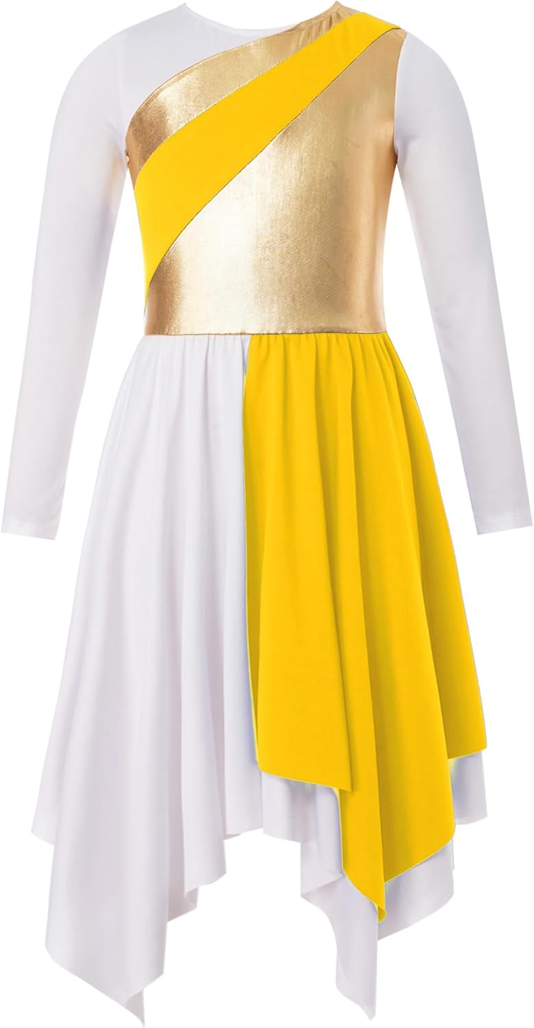 Shinsto Kids Girls Long Sleeve Praise Dance Dress Asymmetrical Liturgical Worship Church Robe Tunic