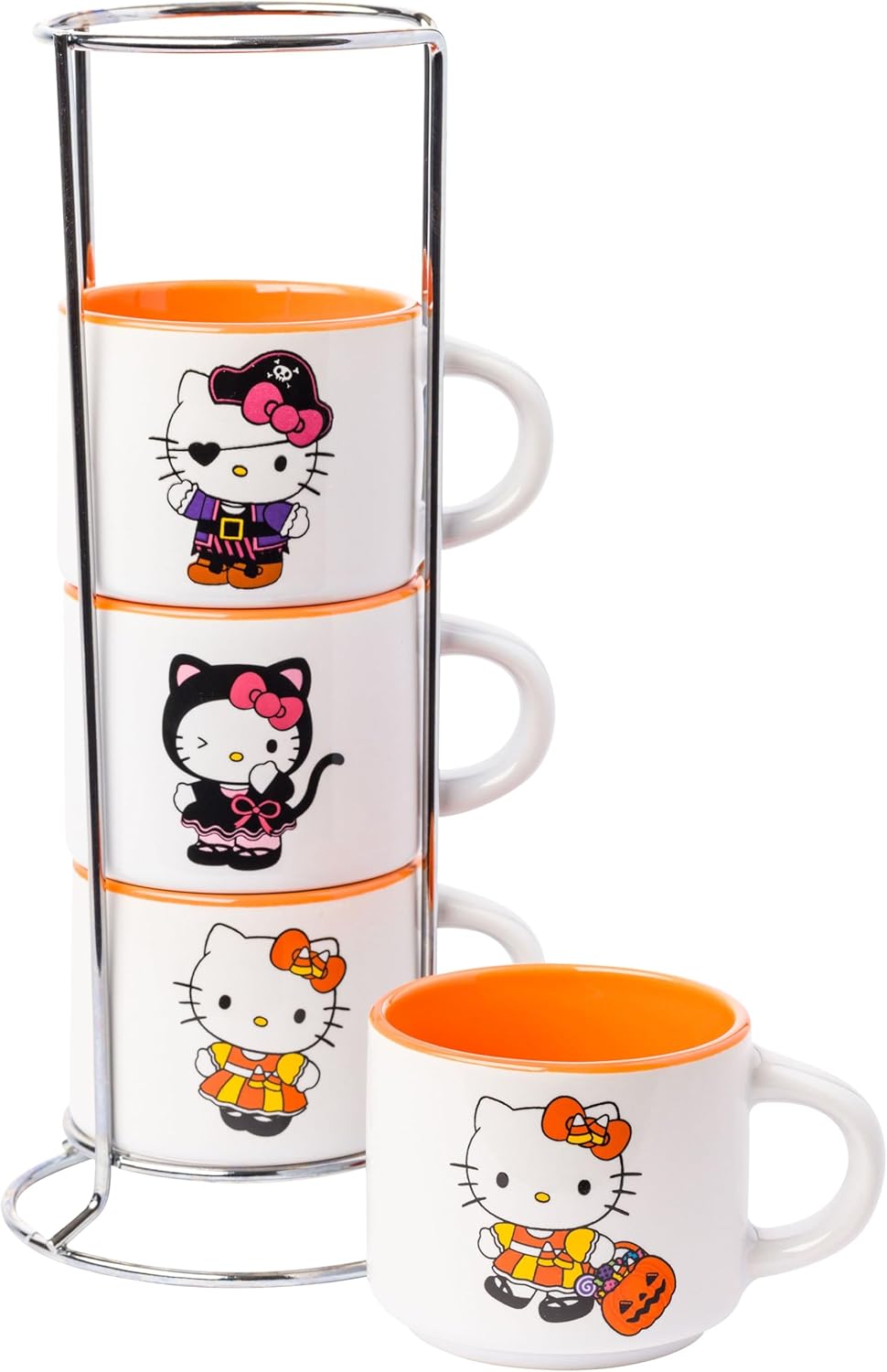 Welcome Hello Kitty and her friends into your home with this 4 pack ceramic espresso cup set. This set is truly a collector’s dream, showcasing four iconic Sanrio characters in detail. Each cup features a Sanrio character – Hello Kitty, Keroppi, My Melody, or Pompompurin against checkered backgrounds corresponding to each character. With its bright colors and adorable characters, this Kawaii set is sure to bring a dash of positivity to your gathering or morning espresso. Additionally, these adorable cups come with a storage rack allowing these espresso cups to be easily stacked and stored. Being both practical and a collector’s item, this 4 piece ceramic espresso cup set is the ideal gift for any Sanrio fan in your life! With iconic characters which are sure to evoke nostalgia and charm, each sip will bring a smile to your face. Mugs are microwave and dishwasher safe. Storage rack IS NOT dishwasher or microwave safe. Take a dive into the fictional world with Silver Buffalo! Silver Buffalo provides fans with official merchandise from their favorite characters. Working alongside licensors and brands, we create unique and imaginative products which are designed with great care and detail. Silver Buffalo aims to connect fans to their favorite cartoon characters, superheroes, movies, tv-series, and more. Celebrate your fandom!