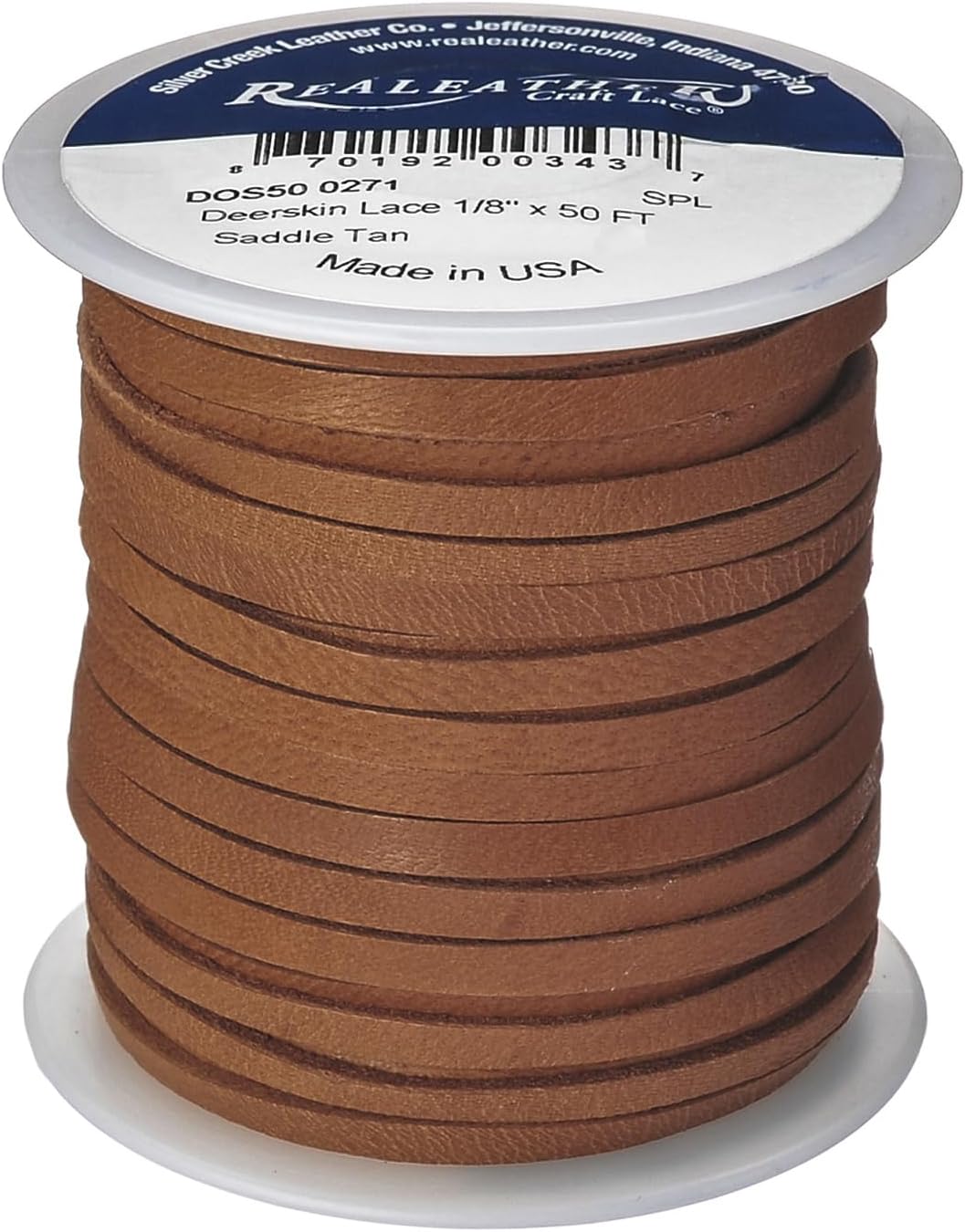 DEERSKIN CRAFT LACE: Our deerskin craft lace is cut from North American whitetail deer hides, this 2 to 3 oz. leather lace is lightweight and flexible, with enough stretch for workability without sacrificing any strength.