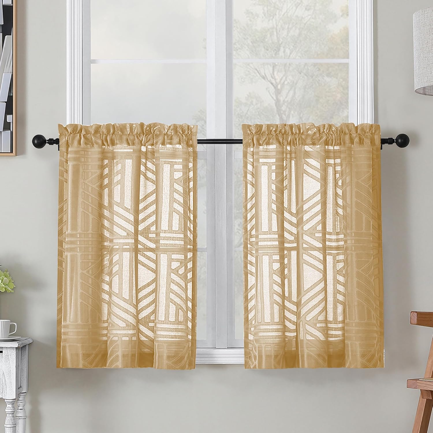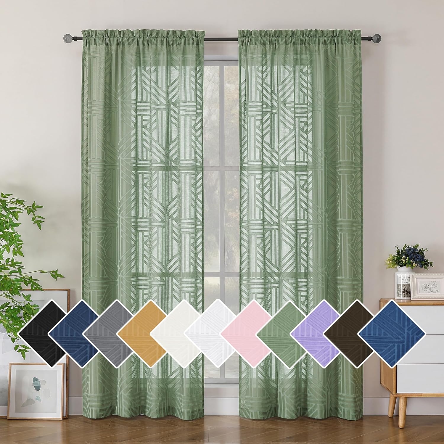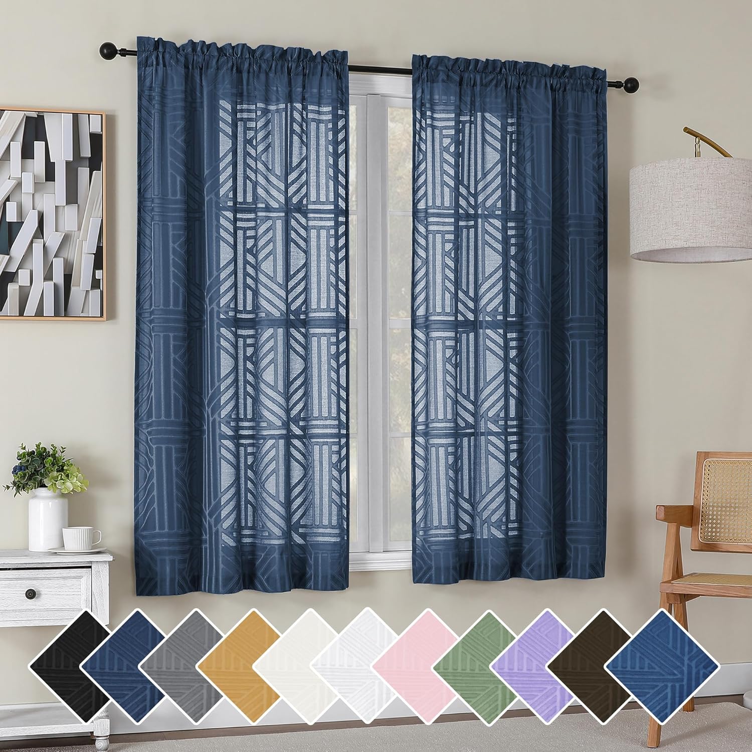 Simplebrand Semi Sheer Charcoal Grey Curtains 90 Inches Long 2 Panels, Light Filtering Geometric Jacquard Clip Textured Sheer Curtains for Living Roon,Modern Elegant Window Curtains Drapes,52x90 inch