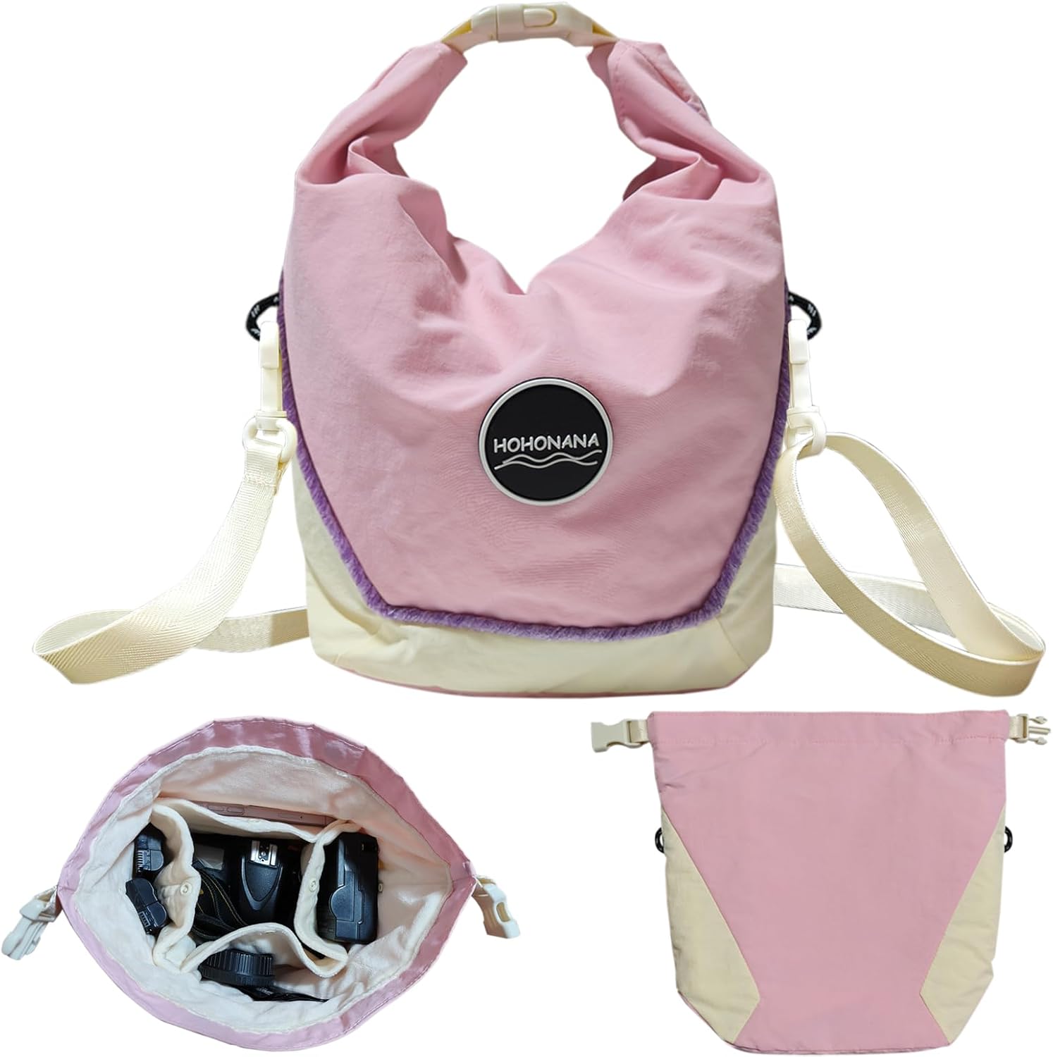 Small Camera Purse for Women Travel Camera Shoulder Bag Water-Resistant & Lightweight Camera Crossbody Case Box for Digital Instant Camera SLR DSLR Compatible with Sony Canon Nikon, Black Cute Outer Design: The exterior of the small camera purse is made of water-resistant fabric to better protect your camera, and there is also a plush decorative strips to increase the beauty of the camera bag. There is a zipper pocket can hold phone credit cards & keys. Magnetic opening method makes the camera shoulder bag very convenient to take camera in& out. A cute camera bag for women Inner Design: The interior of the camera case is made of thick velvet fabric can fully protect your camera. There're 2 pockets inside to store small accessories like filters, memory cards, data cables, power banks, etc. There are also storage compartments on both sides, which can turn the main compartment into 3 compartments, effectively isolating objects like cameras, lenses, & chargers. Close the button to get a large compartment, very convenient design Multiple Applicable Methods: Plug the shoulder strap on, the cute camera package can be used as a crossbody camera bag; While remove it, fold the top and plug the buttons on both sides to make the camera shouder purse a camera handbag. When not carry your camera, this bag can even be used as a fashionable women's bag! Whether it's a crossbody bag, shoulder bag, or handbag, it is all perfect! The lightweight design with contrasting colors is impeccable for both daily and travel "Small & Lightweight Design: The measure of this camera bag is: minimum length for 6 inches, the height for 10.5 inches, and the thickness for 4.2 inches. Tahe camera cossbody bag has a small size, but can accommodate your phone, camera, lens, charger, data cable, power bank, etc. The weight of the camera purse is only 197g, and taking the camera out will not add too much burden to you. It is lightweight and practical, fits for traveling " Perfect Gift: Ideal for young female photography enthusiasts or professionals, this elegant and protective camera case is an adorable gift for your daughter, sister, girlfriend, or wife. This camera bag can be used as handbag, shoulder bag, crossbody bag, with its thoughtful design, it's a great choice for birthdays, Thanksgiving, Christmas, New Year, and other special occasions