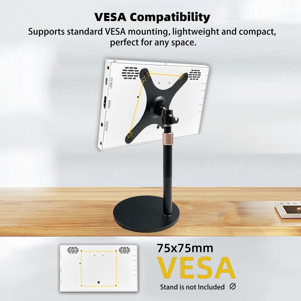 Specifications: Product Type: 7inch Portable Monitor Screen Size: 7inch Resolution: 1024x600 Panel Type: IPS Visual Angle: 178° Full View Angle Level index: 16.7M(8-bit) Color Gamut: 50% NTSC Refresh Rate: 60Hz Touch Function: Yes Touchscreen Type: Capacitive Size Ratio: 16:9 Contrast Ratio: 800:1 Brightness: 400cd/m² Speakers: Yes Audio Jack: Yes Weight: 231g This portable touch monitor supports Windows/mac OS/Raspbian/Ubuntu/Kali/Retropie. Only single-point touch is supported in most of systems, multiple touches may be supported in some software, max 5-points. Connect to PC The display supports Windows 7/8/10/11 when working with Windows PC, supports 5-points and it is driver free. 1. Connecting the USB-C 5V interface of display to USB-A port of PC by USB-A to USB-C cable. 2. Connecting the interface of display to HDMI port of PC by standard HDMI cable. 3. Wait for displaying. Connect to Raspberry Pi 1. Insert the TF card to Raspberry Pi. 2. Connecting USB-5V interface of the monitor to a USB port of Raspberry Pi. 3. Connecting HDMI interface of the monitor to HDMI port of Raspberry Pi. 4. Power on Raspberry Pi and the LCD will display. Raspberry Pi doesn't support hot-plug and auto-recognized the resolution, you need to configure the resolution manually, otherwise, the display cannot work normally. What's included? 7 inch Monitor x 1 HDMI Cable x 1 USB Cable x 1