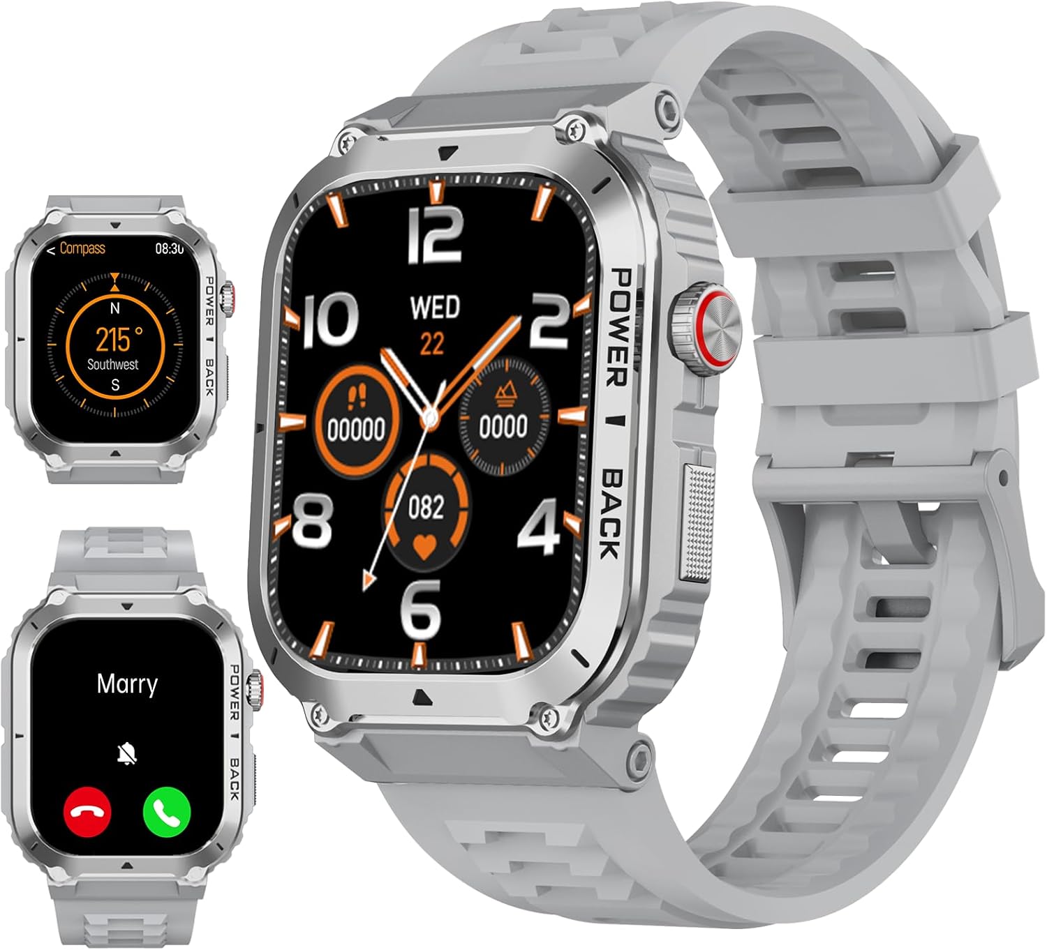 Built-in GPS,Fitness Tracker, Bluetooth Answer and Make Call, Sleep Monitor, Blood Oxygen Monitor, Heart Rate Monitor,Smart Notifications,Campass,Altitude,Air Pressure, AI Voice Assistant, Military Standard Quality,Sedentary and Drink Water Reminder,IP68 Waterproof/100+ Sports Modes,All-day Activity Tracker(Distance/steps/calories),Customized Watch Faces,Alarm Clock, Stopwatch, Timer, Pedometer, Remote Camera , Music Playback, Weather Forecast,Calendar, Calculator, 60 Days Long Battery Life |