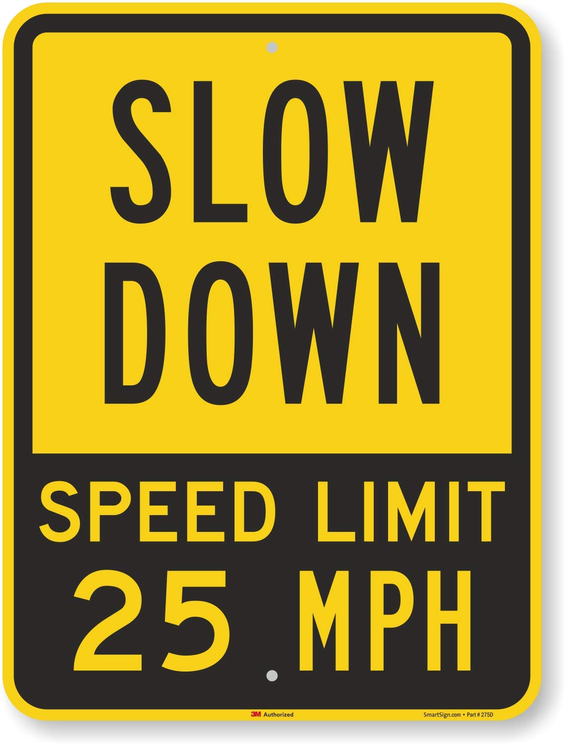 SmartSign 24 x 18 inch “Slow Down - Speed Limit 25 MPH” Metal Sign, 80 mil Laminated Rustproof Aluminum, Black and Yellow