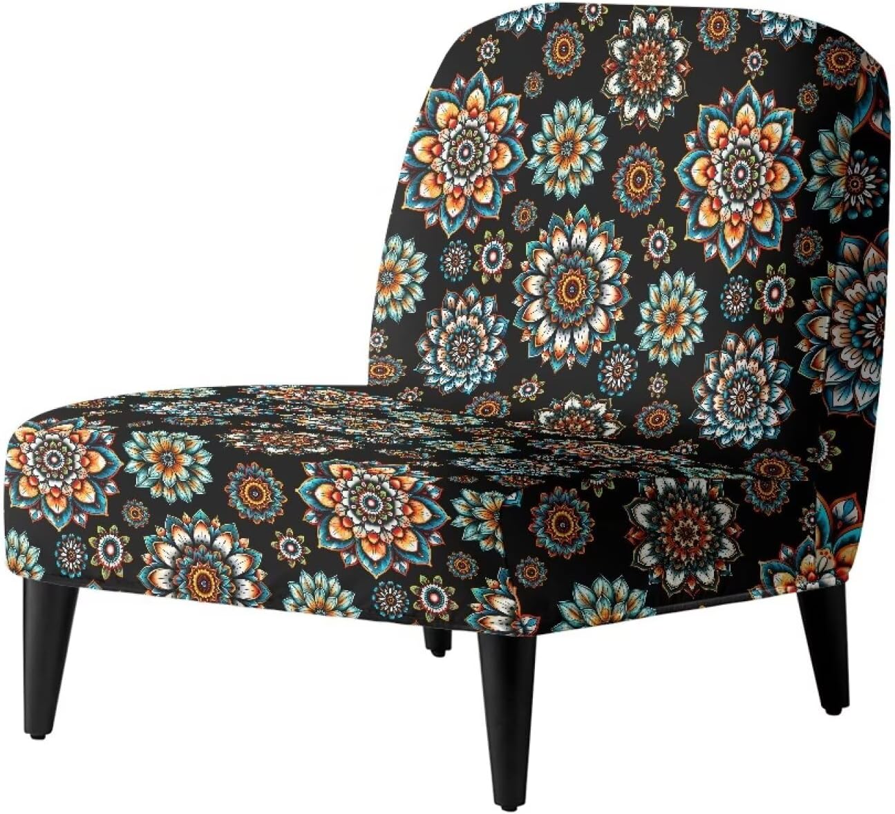 Selected fabrics to enhance living comfort: Our armless accent chair cover is crafted from a blend of polyester and spandex. This fabric is wrinkle-resistant and sturdy, maintaining its smooth appearance even after prolonged use. It feels soft and breathable, keeping your sofa dry and comfortable to avoid heat and moisture, creating a pleasant home environment for you and your family. Size of elastic fit: The detailed dimensions of armless chair slipcover are as follows: backrest length 21.49-25.51 inches (54.6-64.8 cm), backrest height 12.99-16.96 inches (33-43.1 cm), and backrest thickness 3.93-7 inches (10-17.8 cm); seat length 20.98-23.62 inches (53.3-60 cm), seat width 18.26-22.24 inches (46.4-56.5 cm), and seat thickness 6.49-11.02 inches (16.5-28 cm). Please refer to the size chart and measure your sofa accurately before purchasing to ensure a perfect fit. Protection and decoration: This slipper chair slipcover can effectively block dust, stains and food residue, slow down the aging and yellowing process and extend the life of your sofa. Meanwhile, the rich pattern design adds bright decoration to your living room, dining room, kitchen and holiday party. Easy installation and storage: The armless stretch chair covers with elastic design, the installation process is simple and fast. Put the sofa cover into the back of the chair, use the elastic to wrap the entire sofa, and finally adjust. Storage is also convenient, easy to fold does not take up much space, make your home life more tidy and orderly. Washing tips: This accent chair slipcover supports machine washing and hand washing, easily cope with various stains. It is recommended to wash gently in cold water, avoid bleach, and dry at a low temperature to maintain optimum condition. And avoid ironing to avoid damaging the fabric so that your sofa cover always keep as new, bring a lasting good experience.