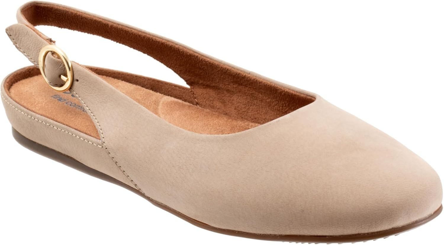 • A comfort focused, round toe flat with opened up styling gives streamlined appeal for dressing up or down.