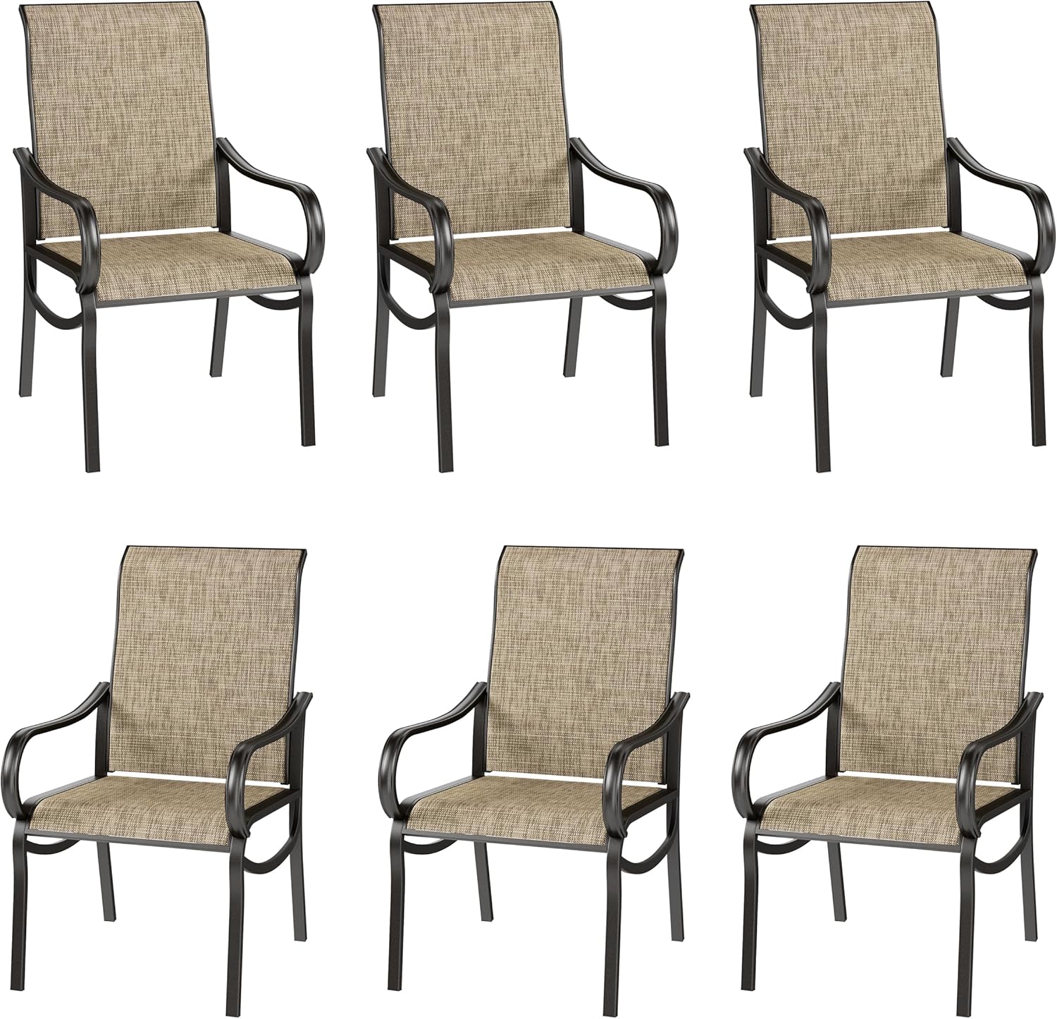 Product Description: Our garden dining swivel chair set combine with 2 sturdy metal steel frame fixed chairs with powder coating. Durable textilene fabric can not only support 300 lbs but also makes you cool in summer and comfortable in winter and provide you a perfect dinner time or leisure time with your family or friends. This chair set is not only suitable for indoor but also suitable for outdoor. It is fit for any occasion. Technical Specifications: Size: seat width: 19.5", seat depth: 21", full height: 40" Material: Metal steel frame chair/ durable textilene Color:brown. Cleaning and Maintenance 1.Easy to clean, weather and rust resistant. No special maintenance 2.Check stability regularly. Screws may loosen and need to be tightened